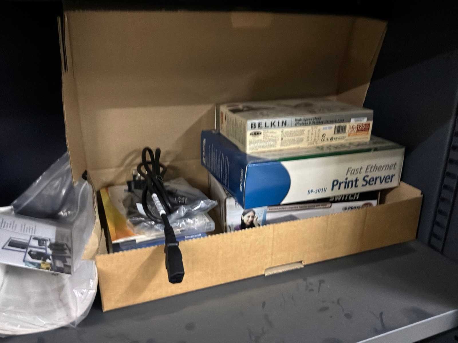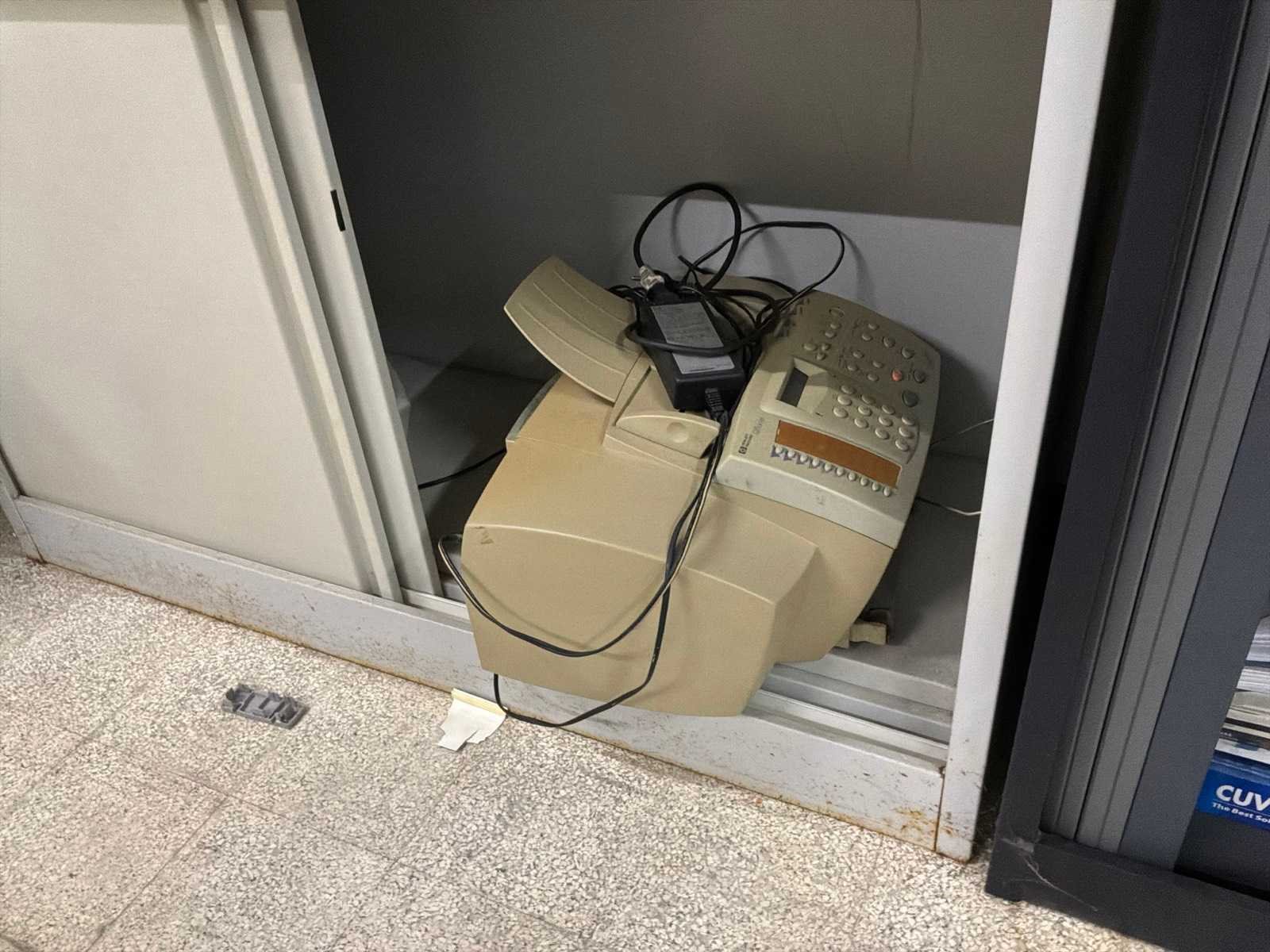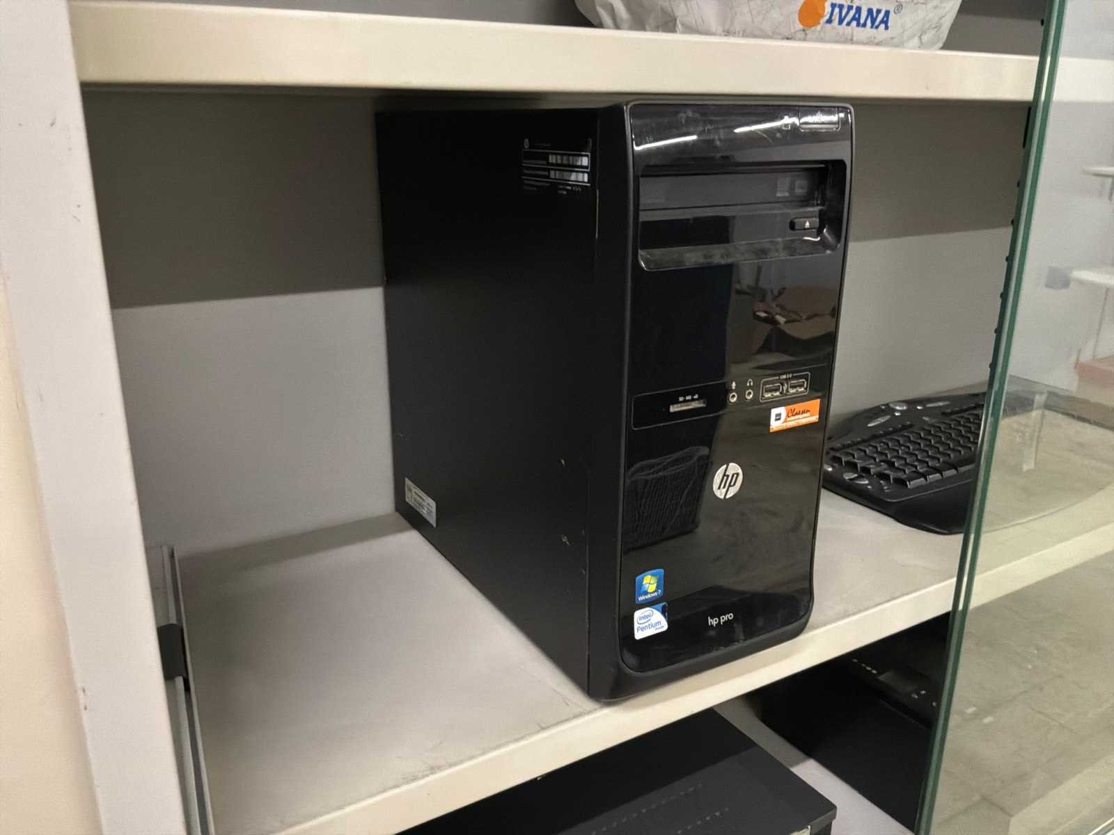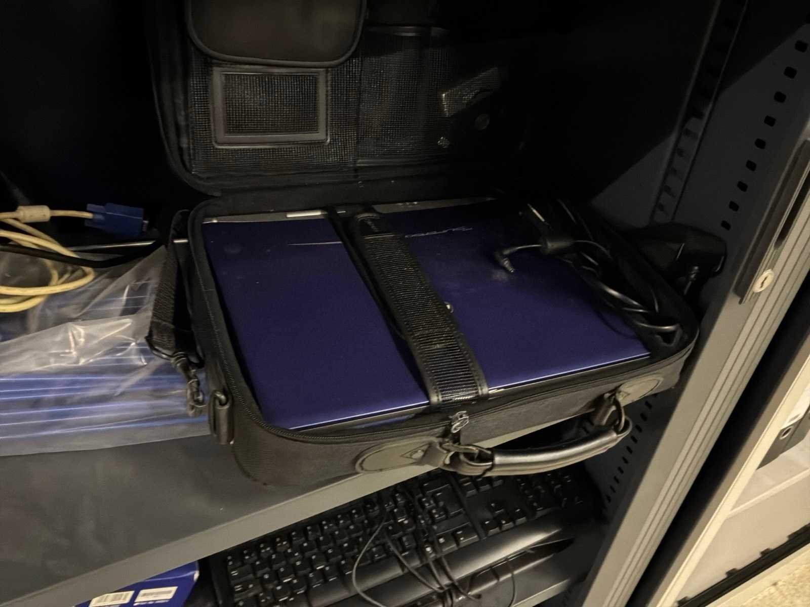 Met inhoud, waaronder verschillende IT materiaal waarvan werking onbekend, inloggegevens/paswoorden niet gekend. 3x pc, 1x laptop, 1x server, 4x monitor, 5x toetsenbord, 1x faxtoestel. Boekhouding in lichtgrijze kast niet inbegrepen.