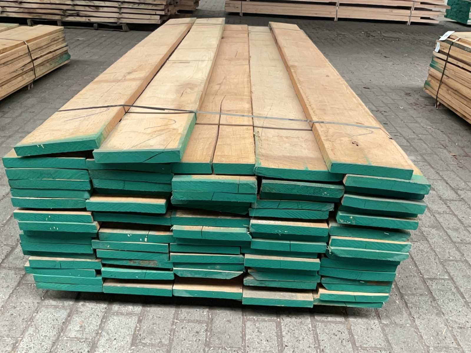 Lengte 215-245 cm; kunstmatig gedroogd; kwaliteit licht rustiek; totaal ca. 1 m³ Kopmaat: 26x205 mm