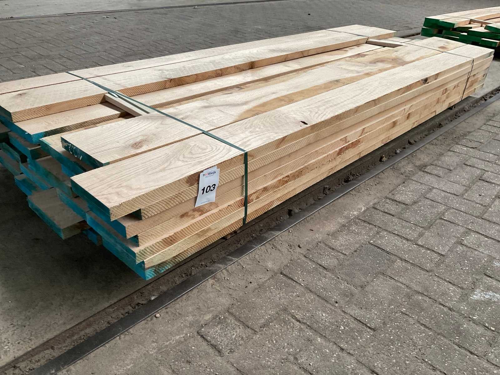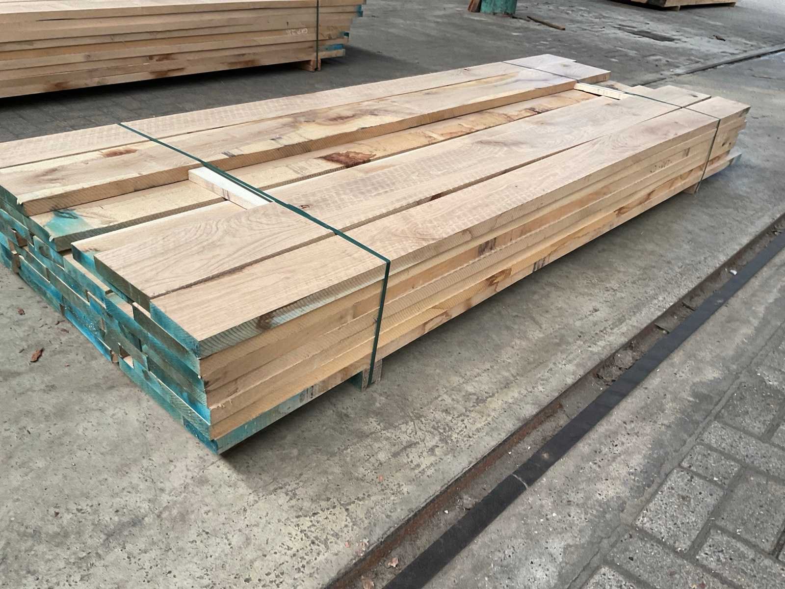 Vallend breed 110-315 mm, lengte 270-280 cm, kunstmatig gedroogd, kwaliteit licht rustiek; voorgeschaafd; totaal ca. 0,7 m³ Kopmaat: 40xdiv.mm