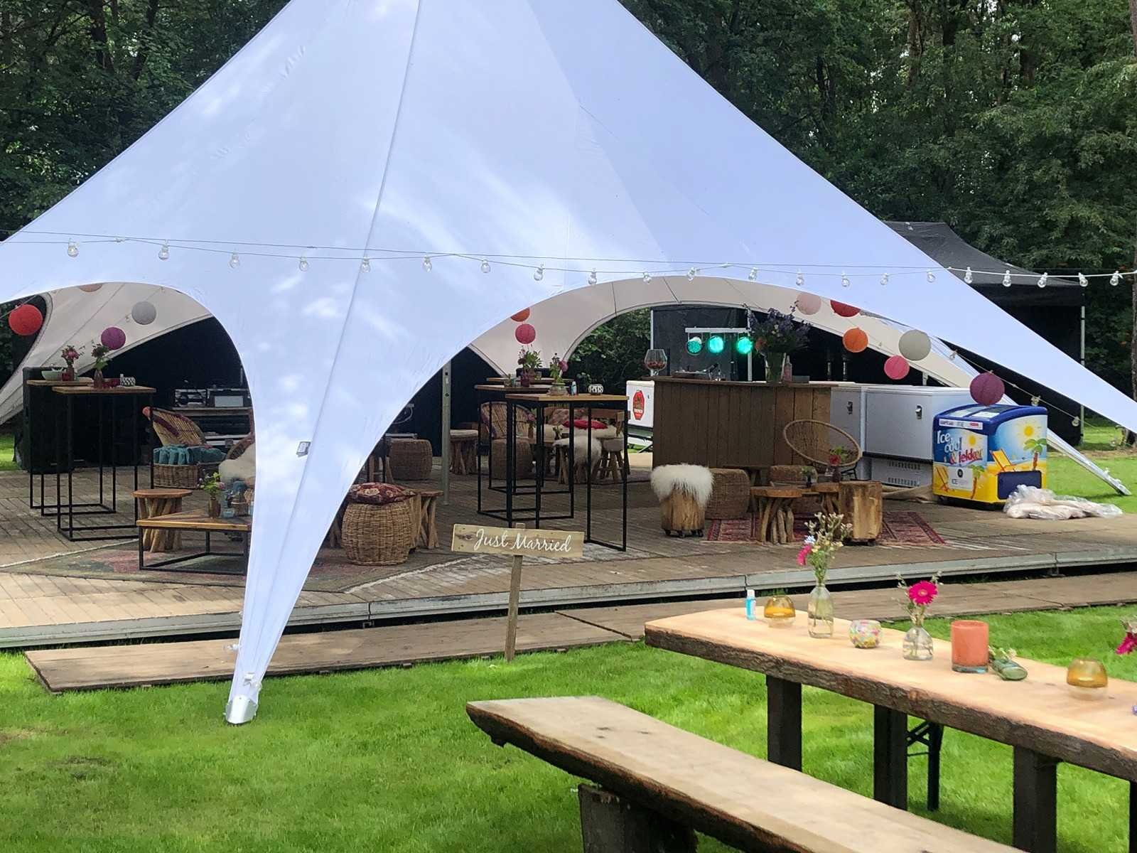 Stertent 16M diameter. Recent Model: Spantent Product type: Stertent/Starshade Kleur: wit Lengte: 1600cm Breedte: 1600cm