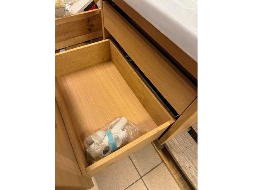 Sanijura Essentiel 60cm natuurlijke massief eikenhouten kast met keramische wasbak Non Merk: Sanijura Model: essentiel Product type: Wastafelkast Lengte: 60cm Breedte: 50cm Materiaal: Natuurlijk massief eikenhout