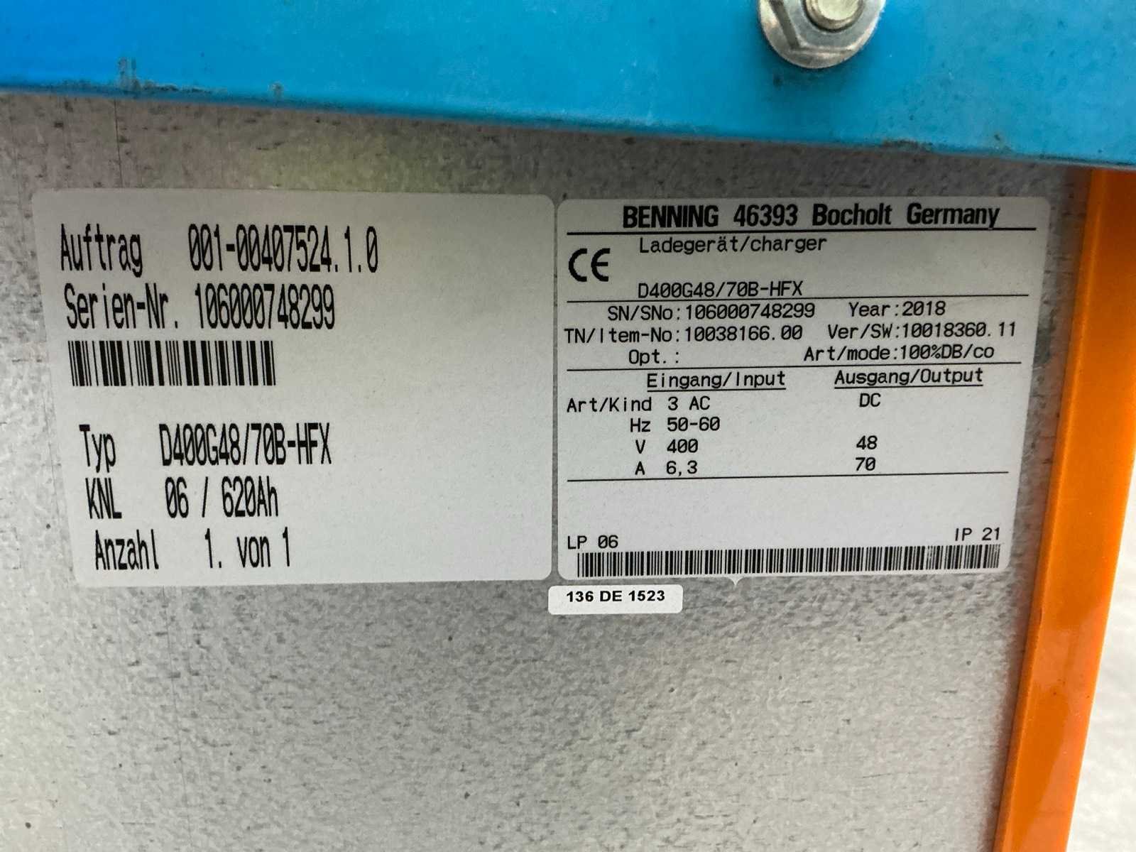Merk: Still Type: HFX 78B Bouwjaar: 2018 Serienummer: 292008 Spanning: 48V Laadstroom: 70A Aansluiting: 400V