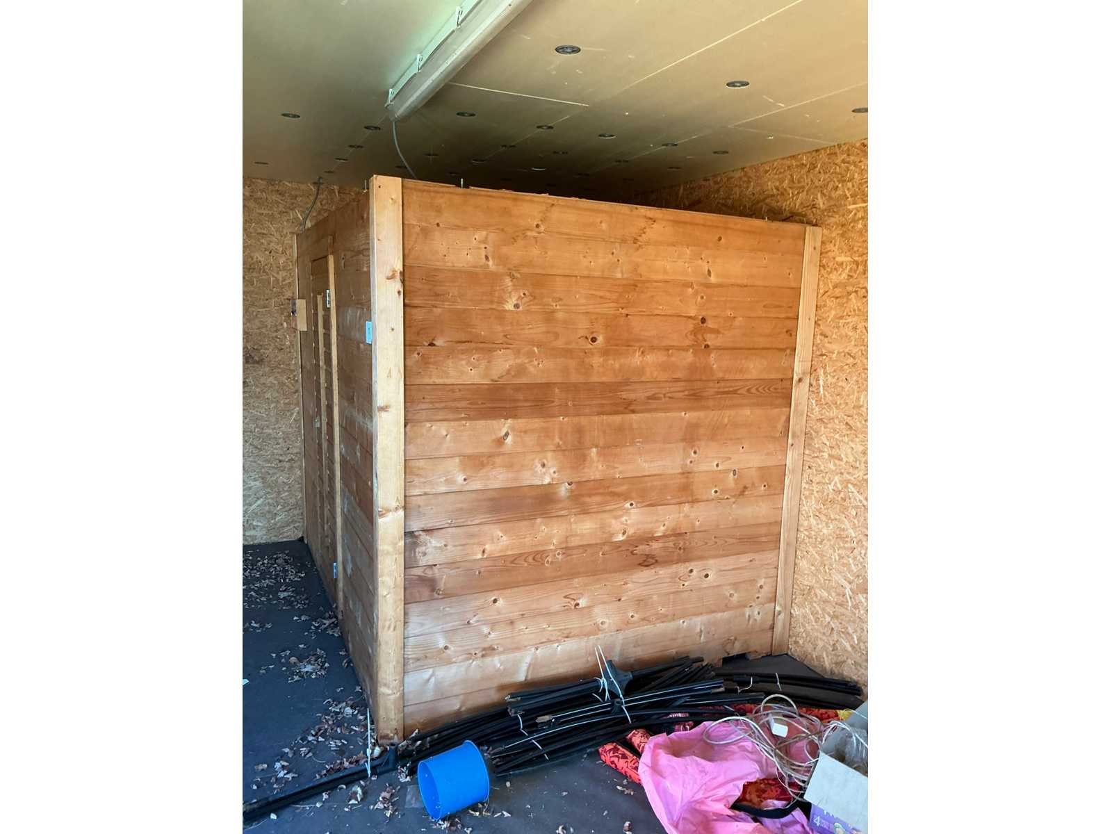 Voorzien van 2 niveau’s, stoomkachel en toebehoren, zelf te demonteren door koper Merk: Alpha Heat Lengte: 245cm Breedte: 195cm Hoogte: 200cm