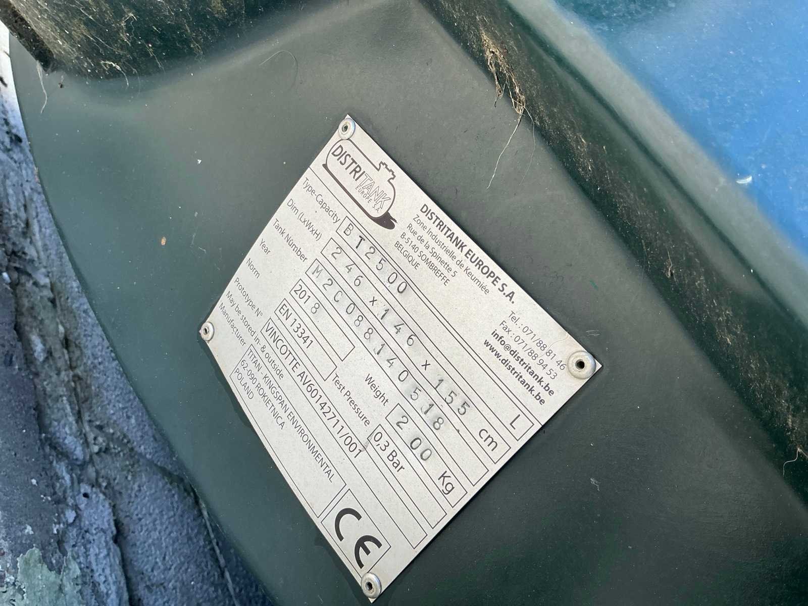 Voorzien van pomp PIUSI met digitale lezing, Leeg, inhoud was witte mazout Merk: Distritank Type: BT2500 Bouwjaar: 2018 Inhoud: 2500L Totale afmeting L: 2460mm Totale afmeting Breedte: 1460mm Totale afmeting Hoogte: 1550mm
