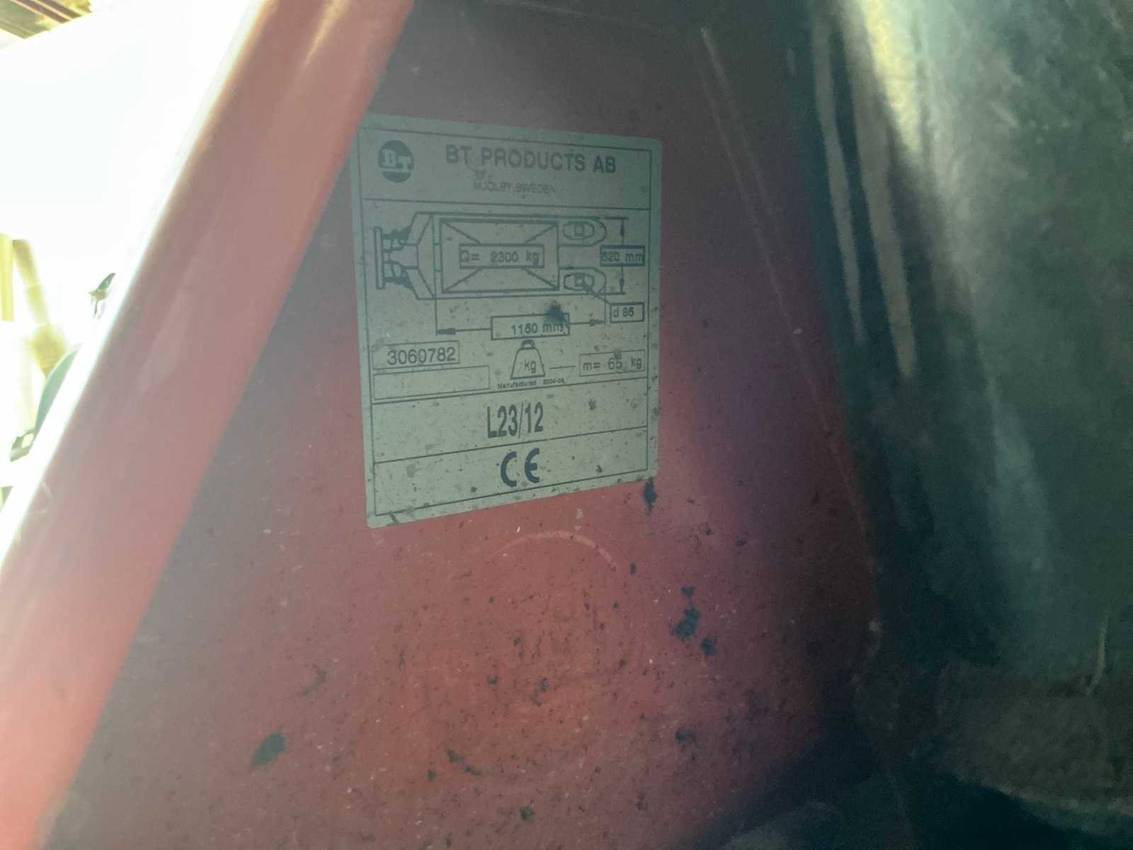 Merk: BT Hefvermogen: 2300kg Lepellengte: 1150mm