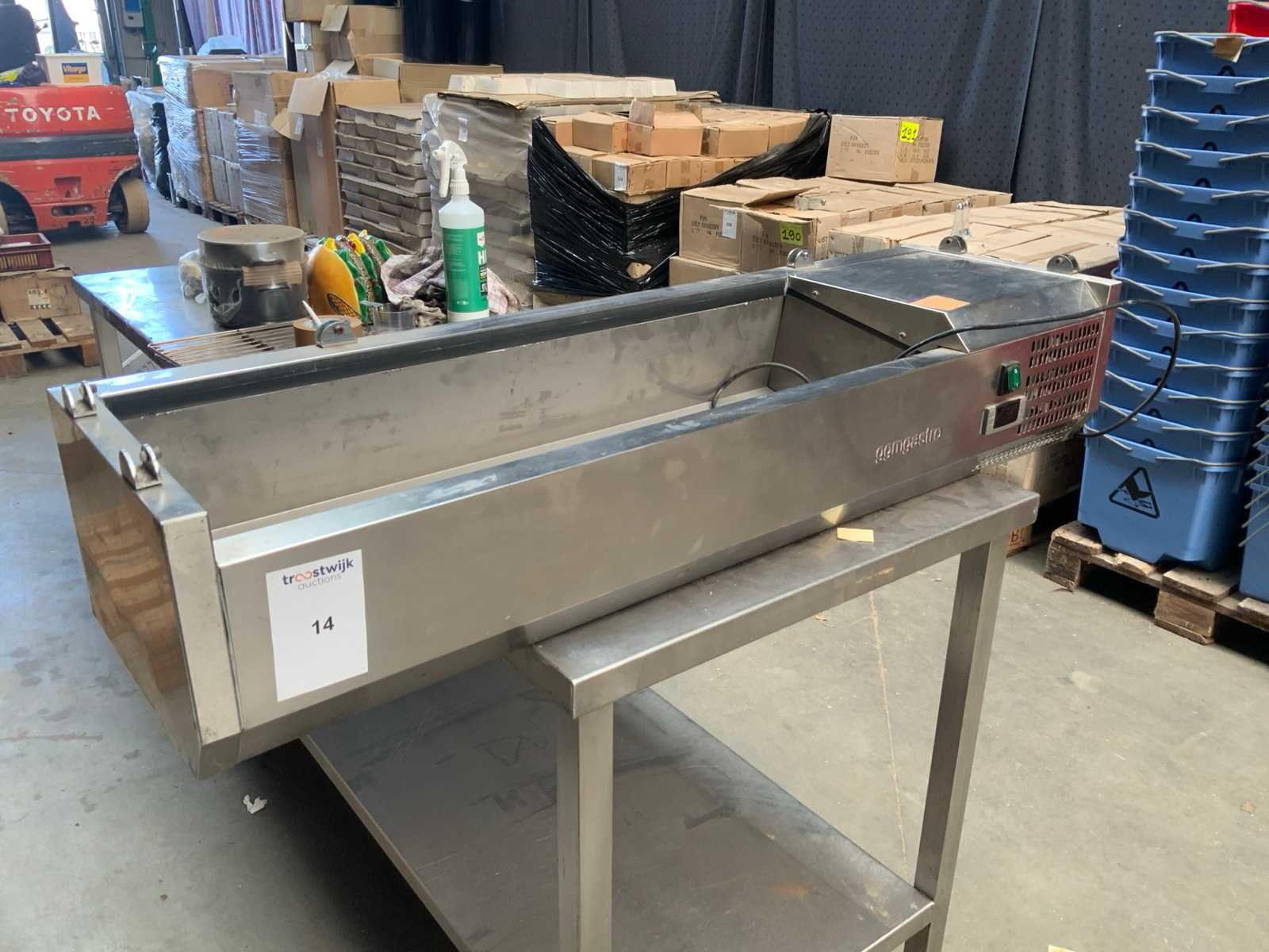 Merk: GGMGastro Type: AGS123 Eigen gewicht: 50kg Ingebouwde koelcompressor: true Digitale uitlezing: true Rvs: true Aansluiting: 230V Totale afmeting L: 34cm Totale afmeting Breedte: 120cm Totale afmeting Hoogte: 25cm