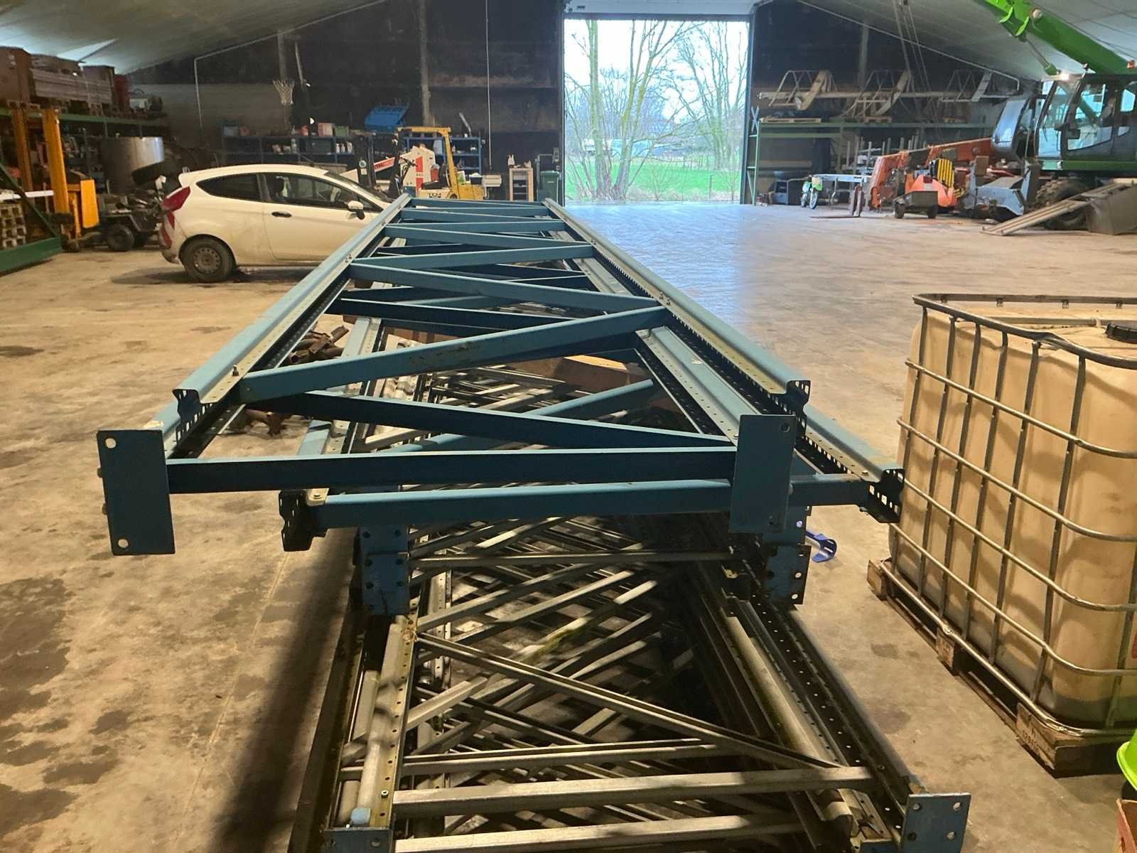 Hoogte staanders: variërend tussen 4000 en 6300 mm/ lengte liggers: 2900 mm Aantal staanders: 16 Aantal liggers: 44