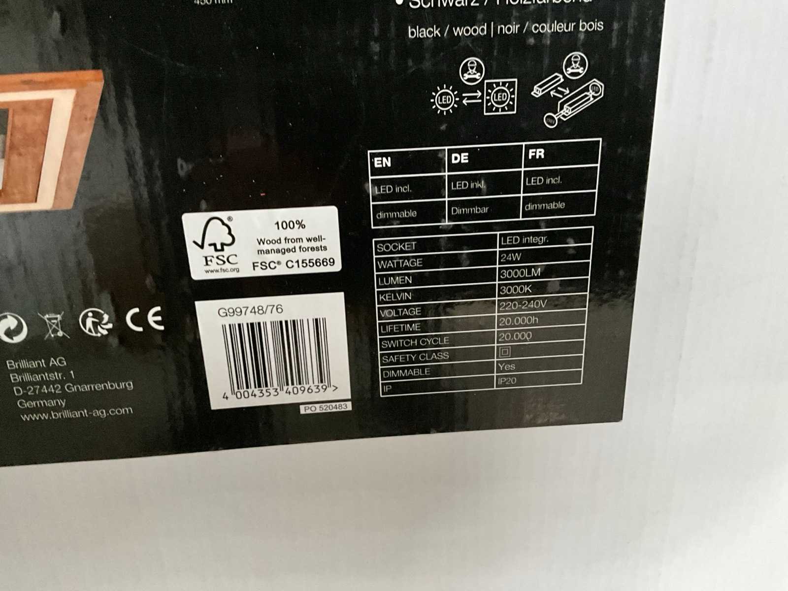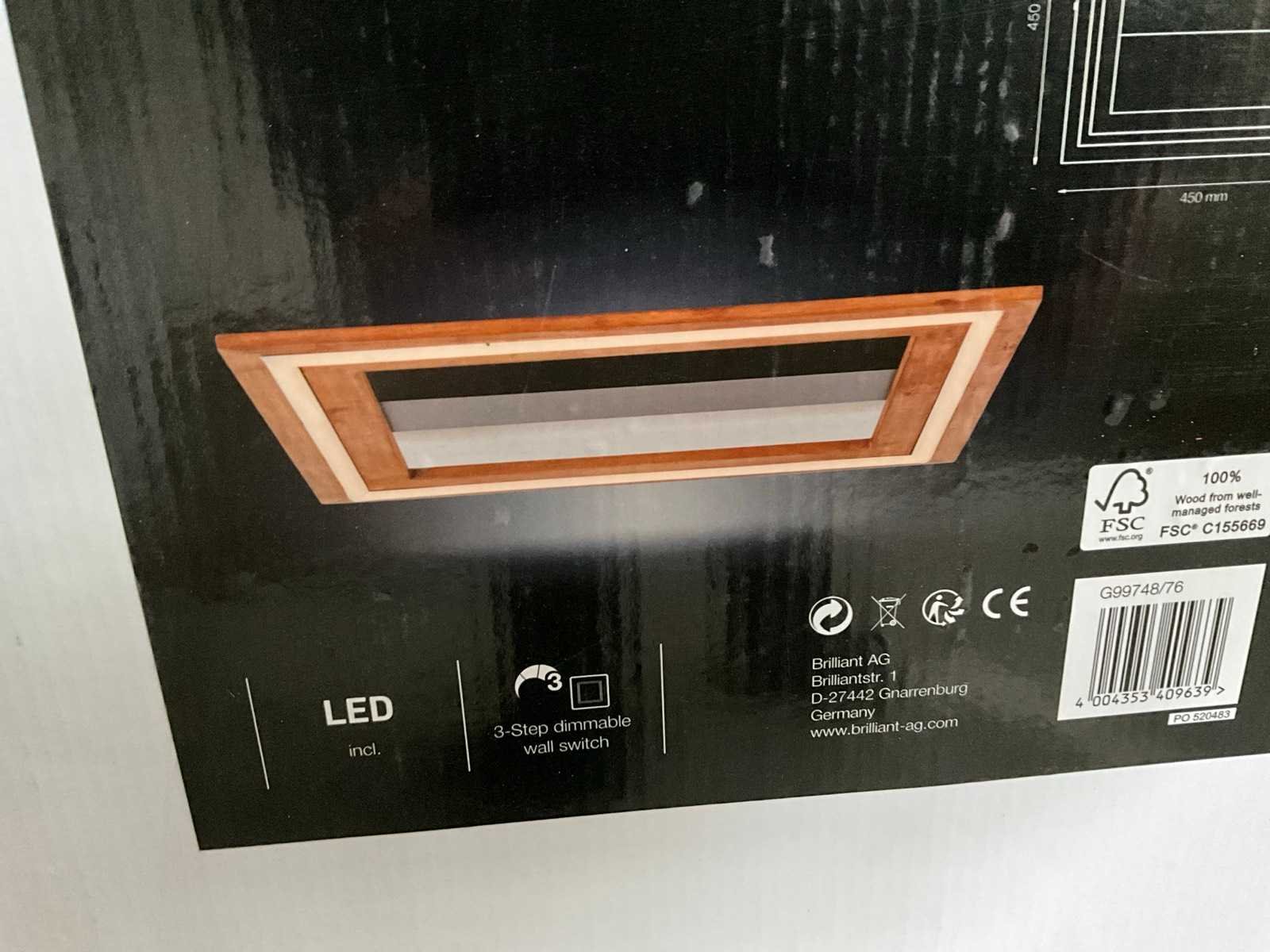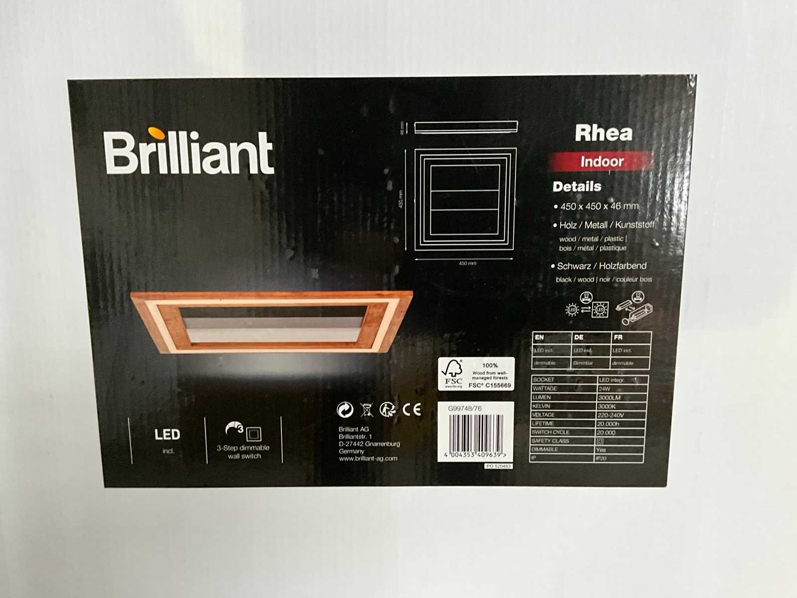 Merk: Brilliant Model: Rhea Lichtbron: Led Met lichtbron: true Kleurtemperatuur: 3000k Dimbaar: true Kleur: Zwart, hout Lengte: 45cm Breedte: 45cm Hoogte: 4.6cm Materiaal: Hout, metaal, kunststof