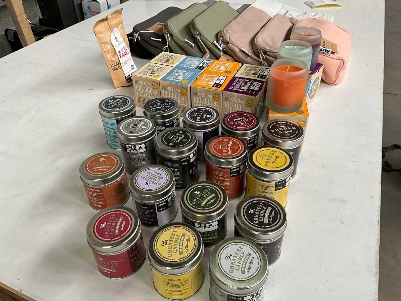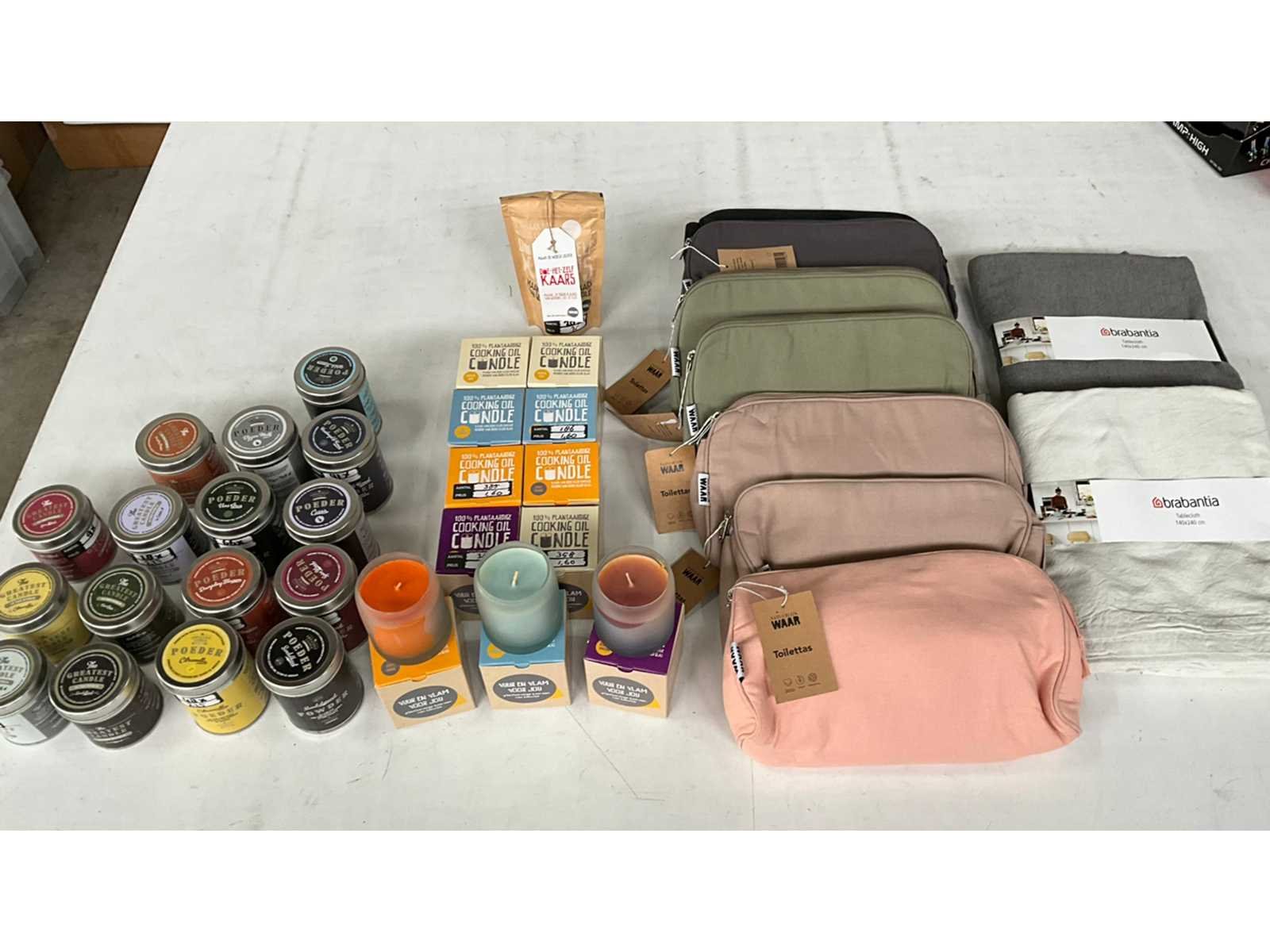 Mix kavel diverse met o.a. kaarsen & toilet tasjes