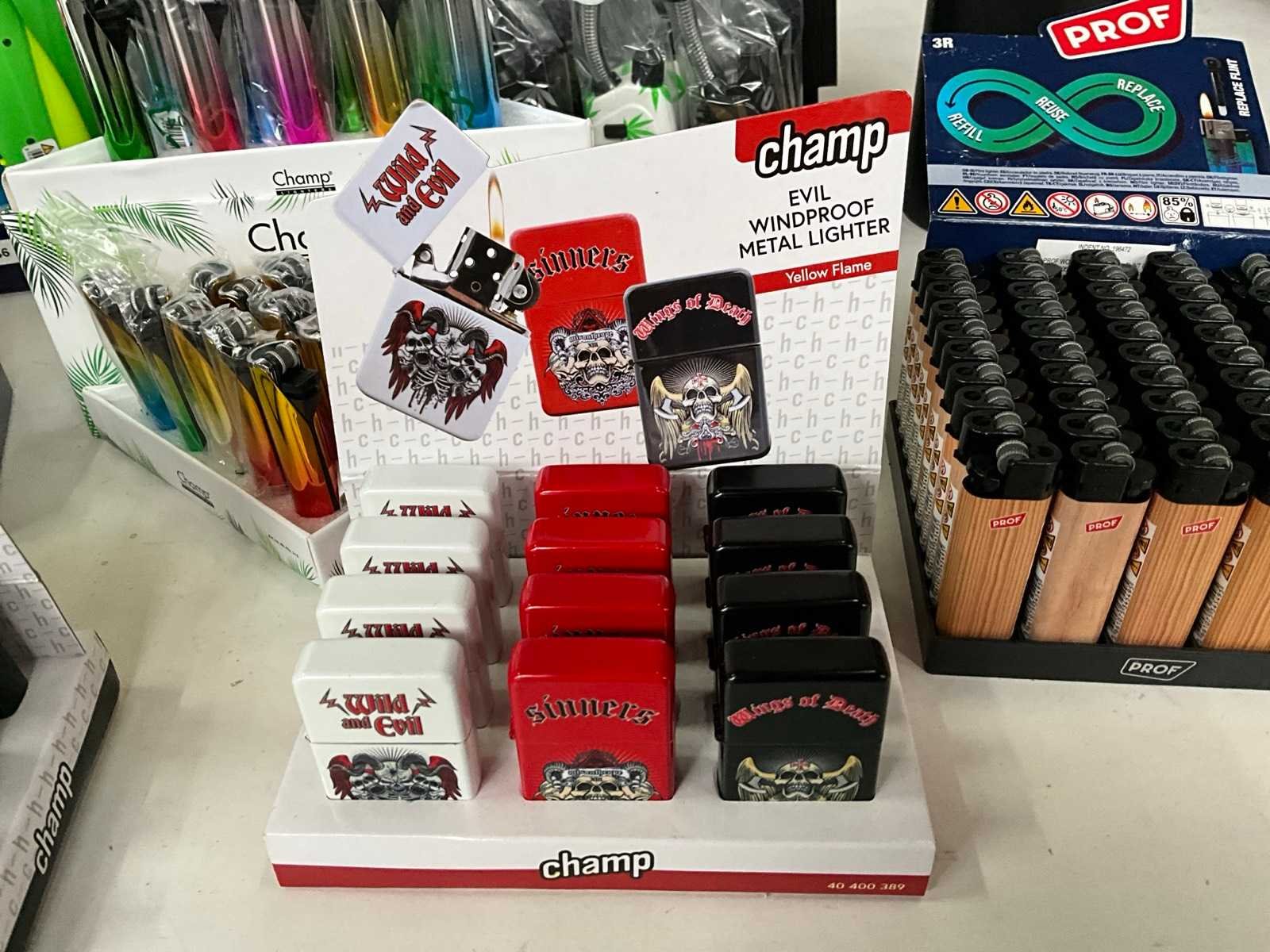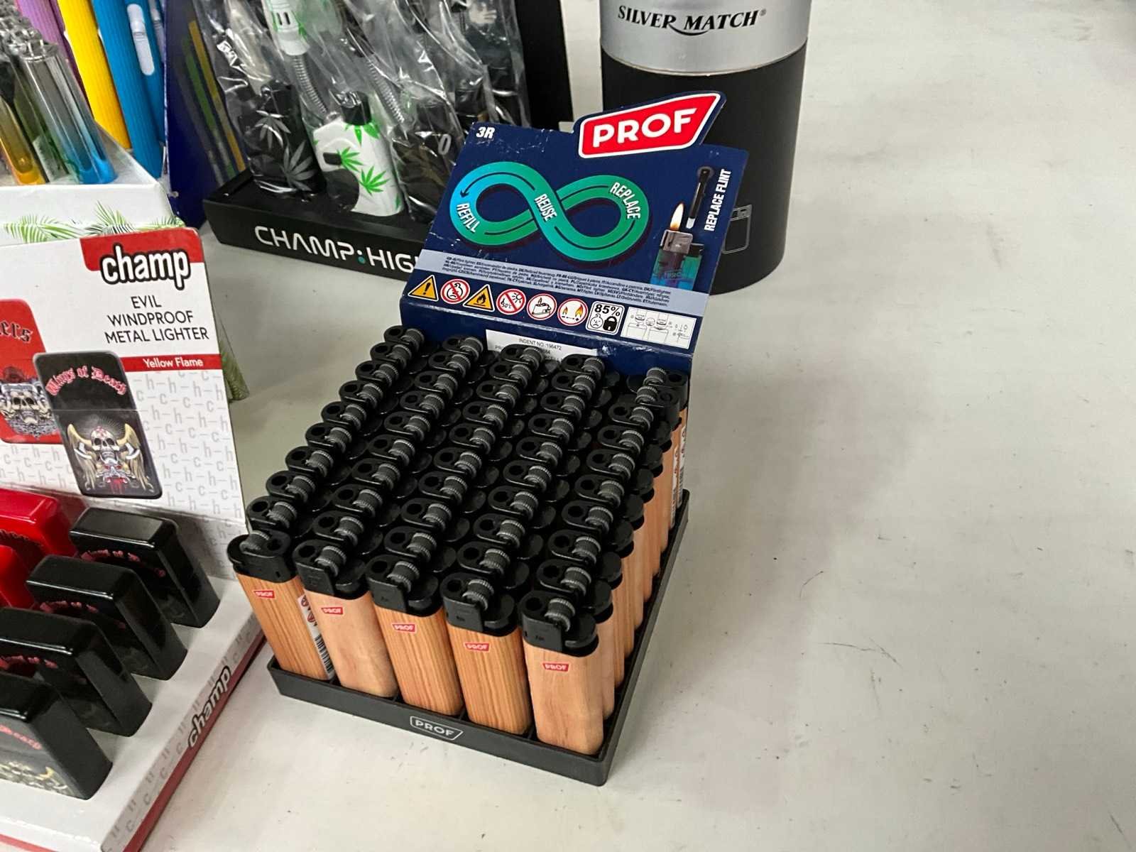 Prof & champ diverse aanstekers in display (173x)