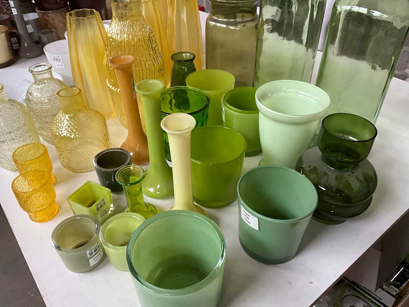 Mix kavel diverse glaswerk o.a. vazen en waxinelichthouders