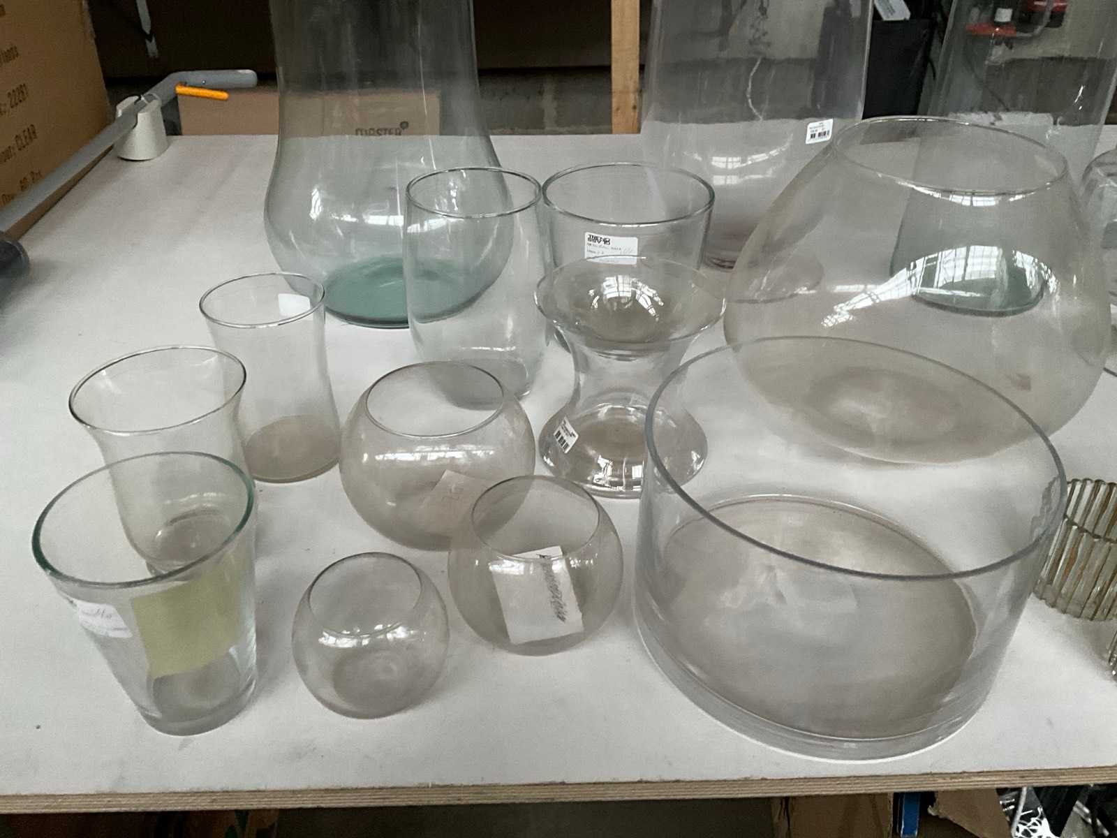 Mix kavel diverse glaswerk o.a. vazen en waxinelichthouders