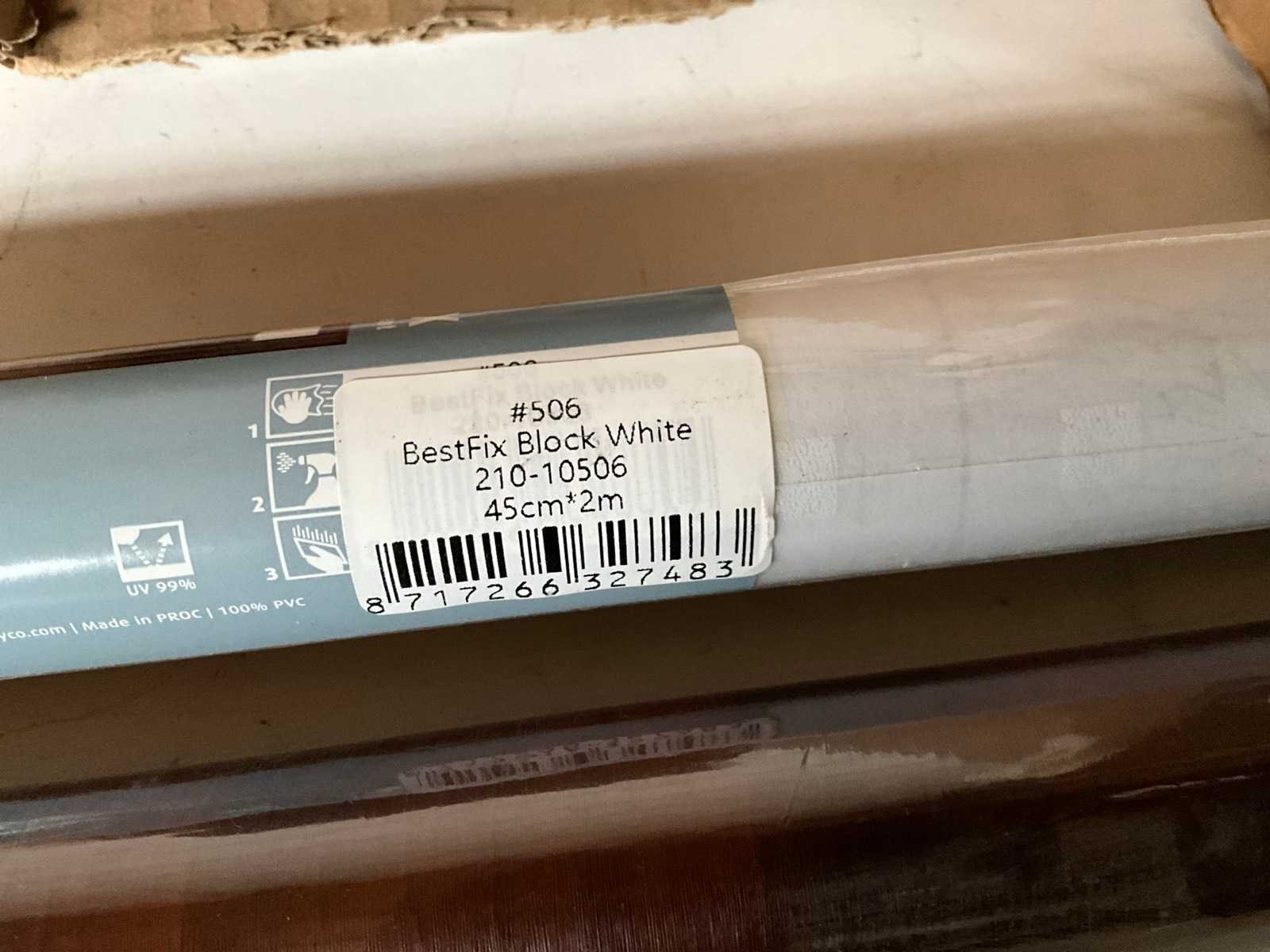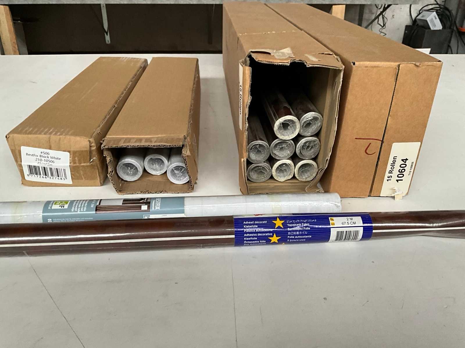 Kavel bestaande uit; 10x 2Lif zelfklevende folie black white 45 cm x 2 m, 24x Gekkofix zelfklevende folie 67,5 cm x 2 m bruin dessin.