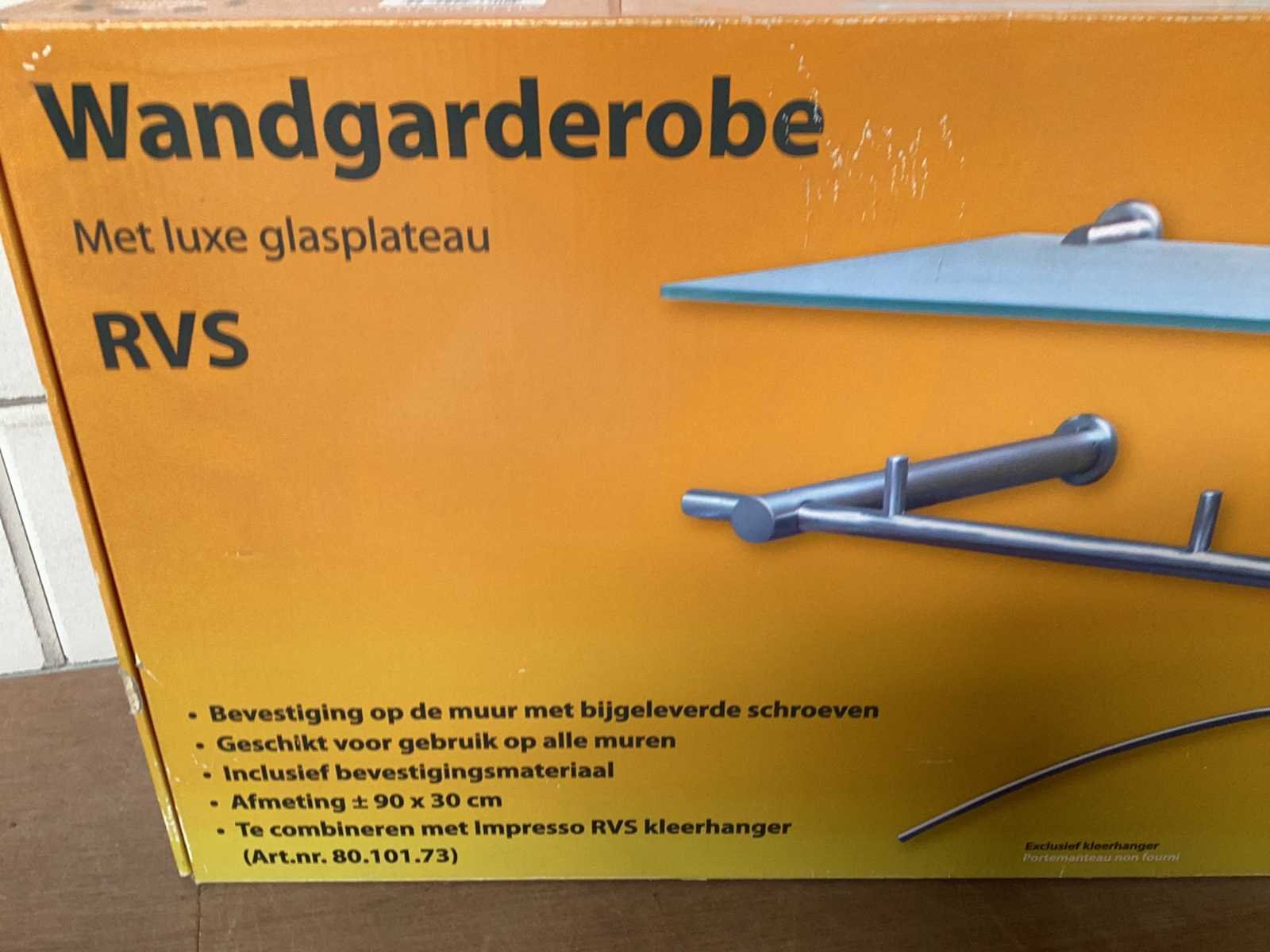 Rvs garderoberek met glasplateau, inclusief montagemateriaal Merk: Impresso Lengte: 90cm Breedte: 30cm