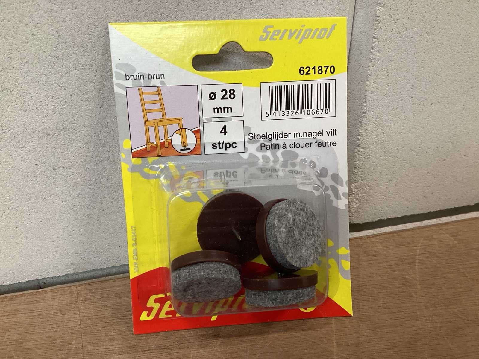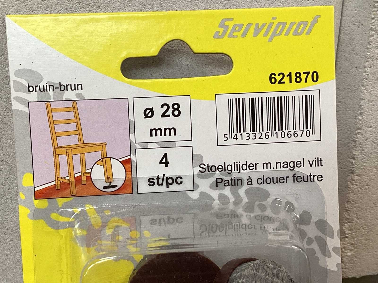 Viltglijder met nagel, diameter 28 mm, bruin, blister 4 stuks Merk: Serviprof