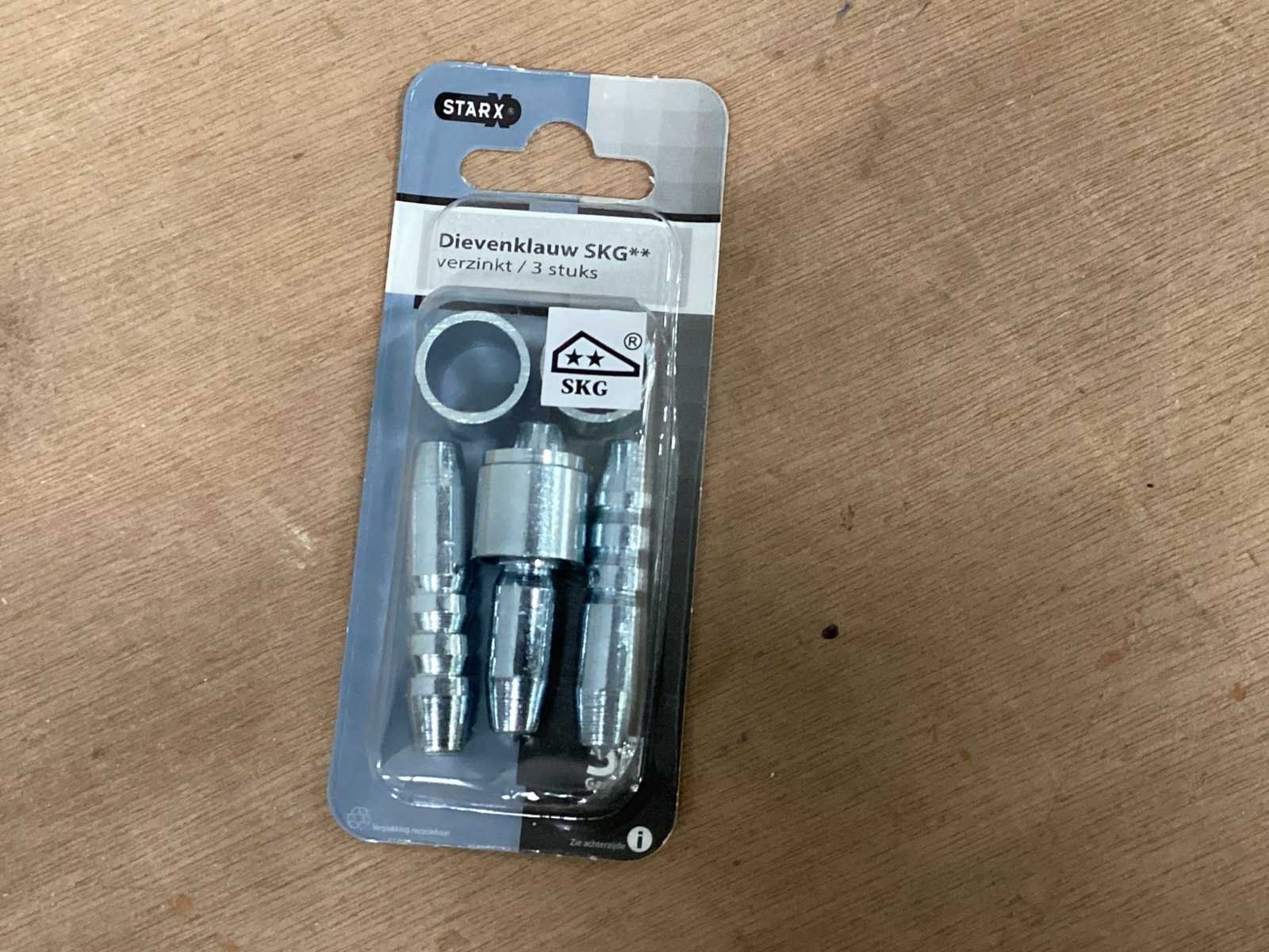Dievenklauw met bus, verzinkt, SKG**, blister 3 stuks Merk: Starx