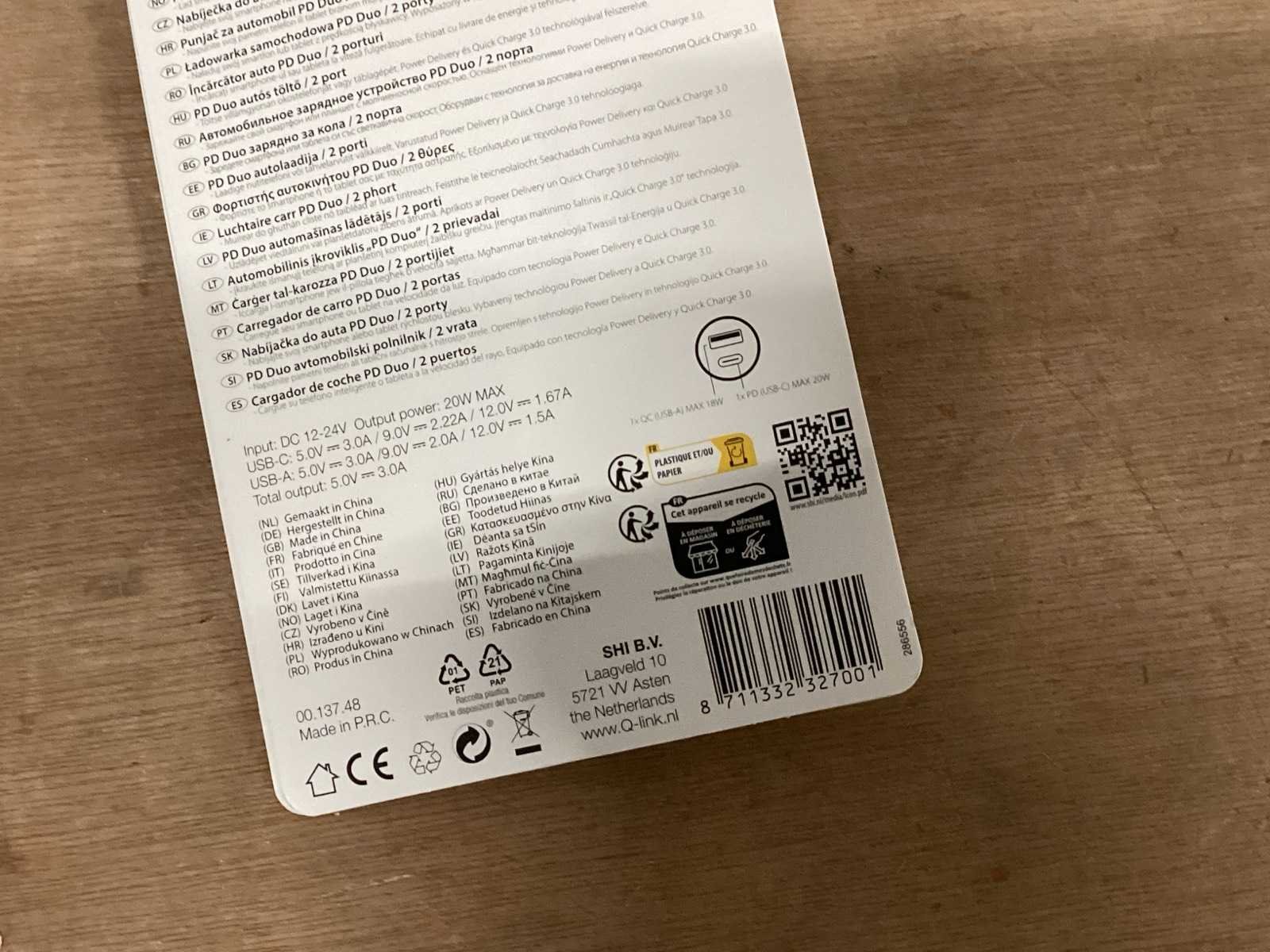 Autolader geschikt voor USB A en C, vermogen 20W, 12 en 24 V Merk: Q-link