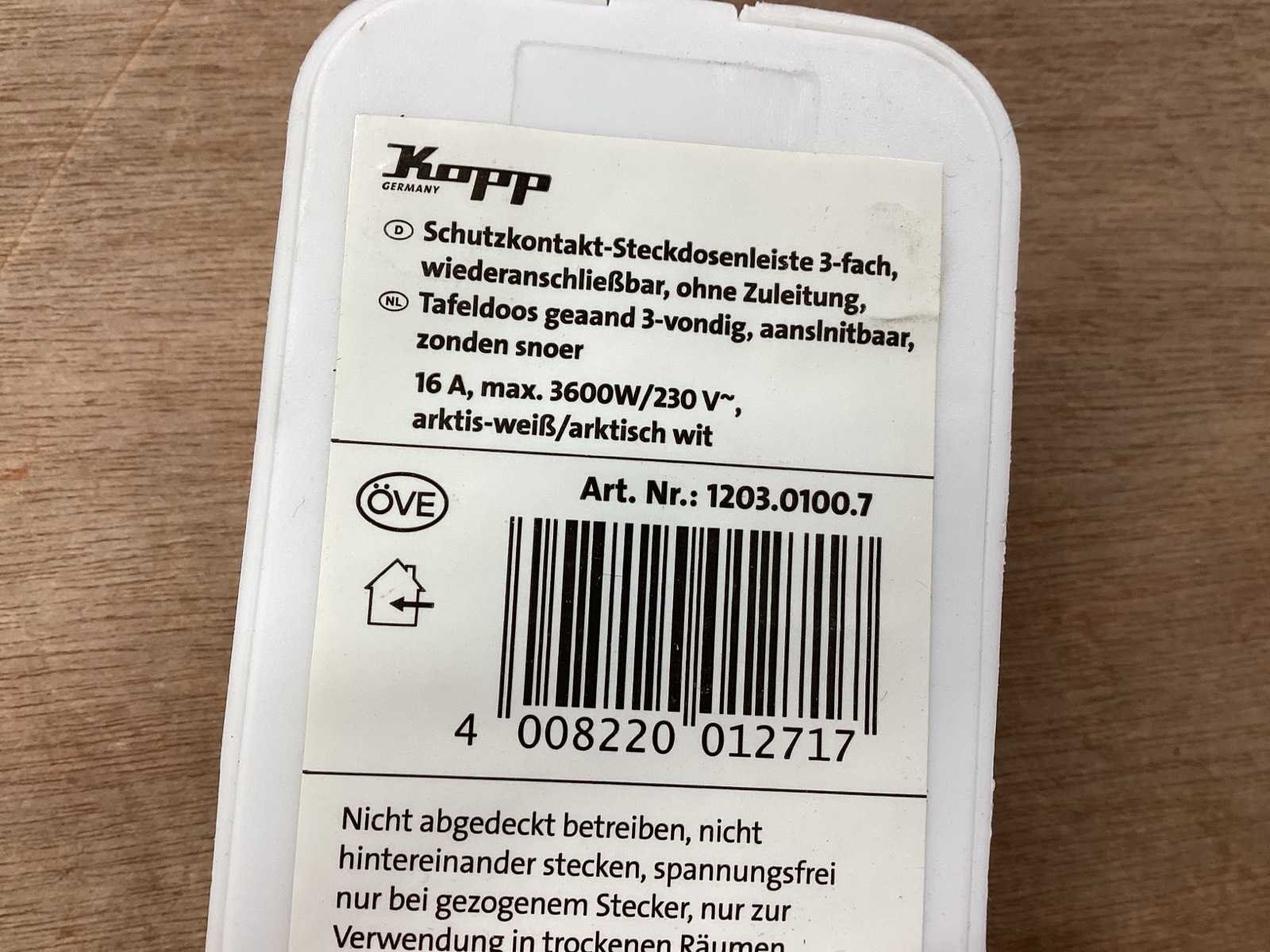 3 voudige stekkerdoos met randaarde, wit, max 3600 watt Merk: Kopp