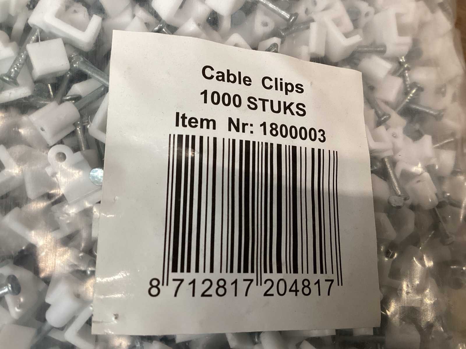 Kabelclips plat,voor kabel tot 5 mm breed, kunststof, stalen nagel 16mm,wit