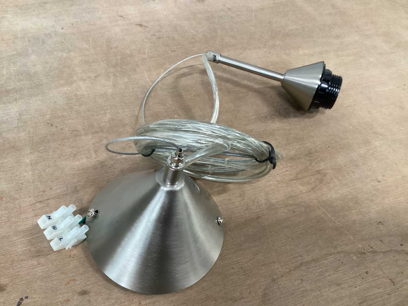 Snoerpendel geborsteld RVS, nikkel,snoerlengte 200cm, verstelbaar,E27 fitting, conische kap