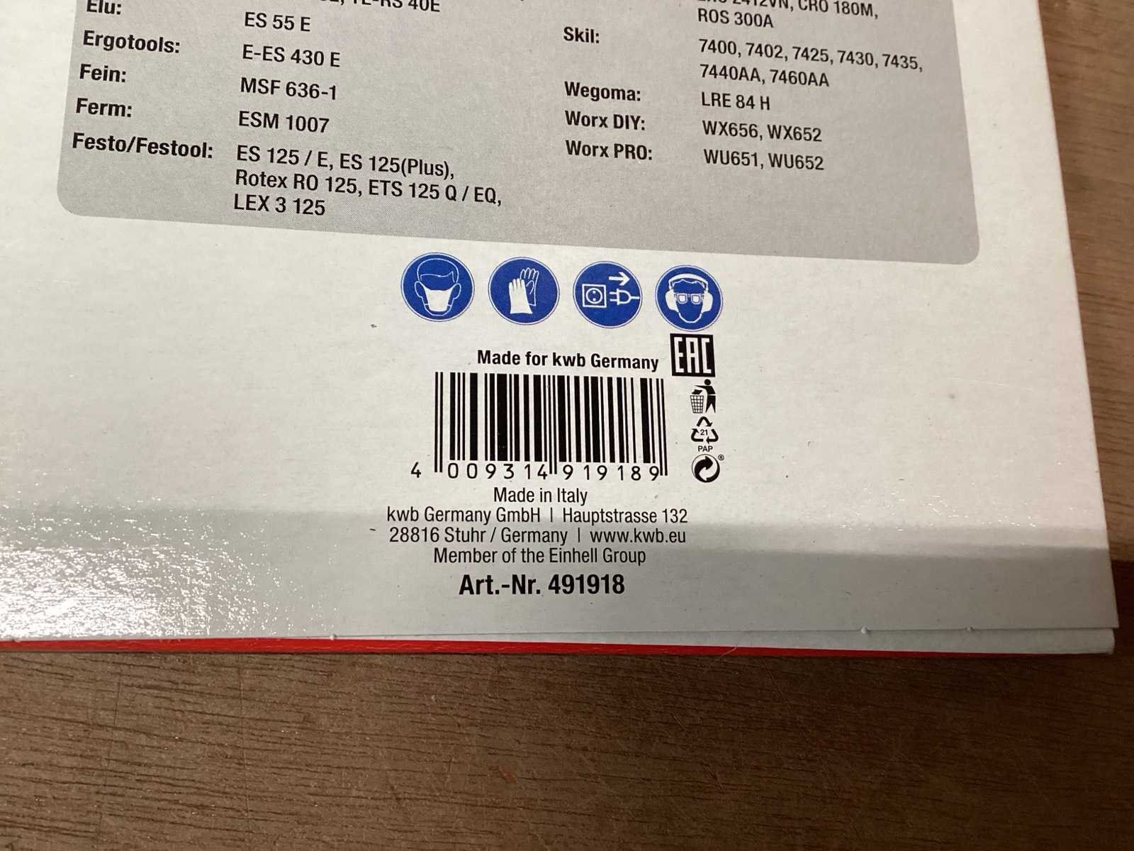 Kwb schuurschijf 125mm, korrel 180 (34x)