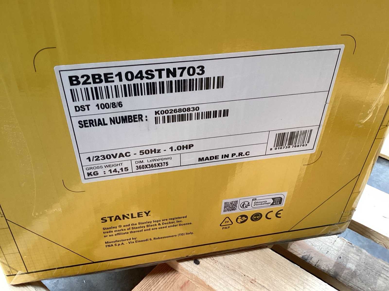Silent air compressor 1 pk, draagbaar, 53 db Merk: Stanley Type: DST100/8/6 Mobiel: true Capaciteit.: 8bar Buffertank inhoud: 6l Aansluiting: 230V