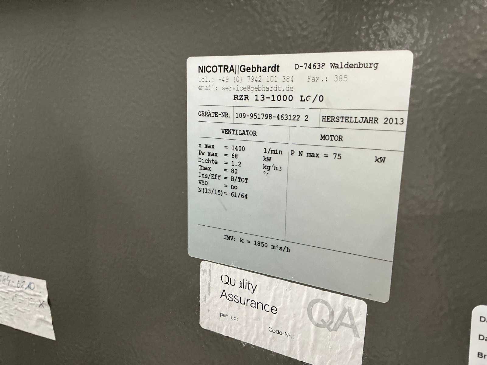 <Br> - Max. toerental: 1400 t/m. - Max. ventilatorvermogen (Pw): 68 kW. - Afmeting: circa 180x190xH195cm. - Met Hoyer elektromotor vermogen 11kW. Merk: Nicotra Gebhardt Type: RZR 13-1000 LG/0