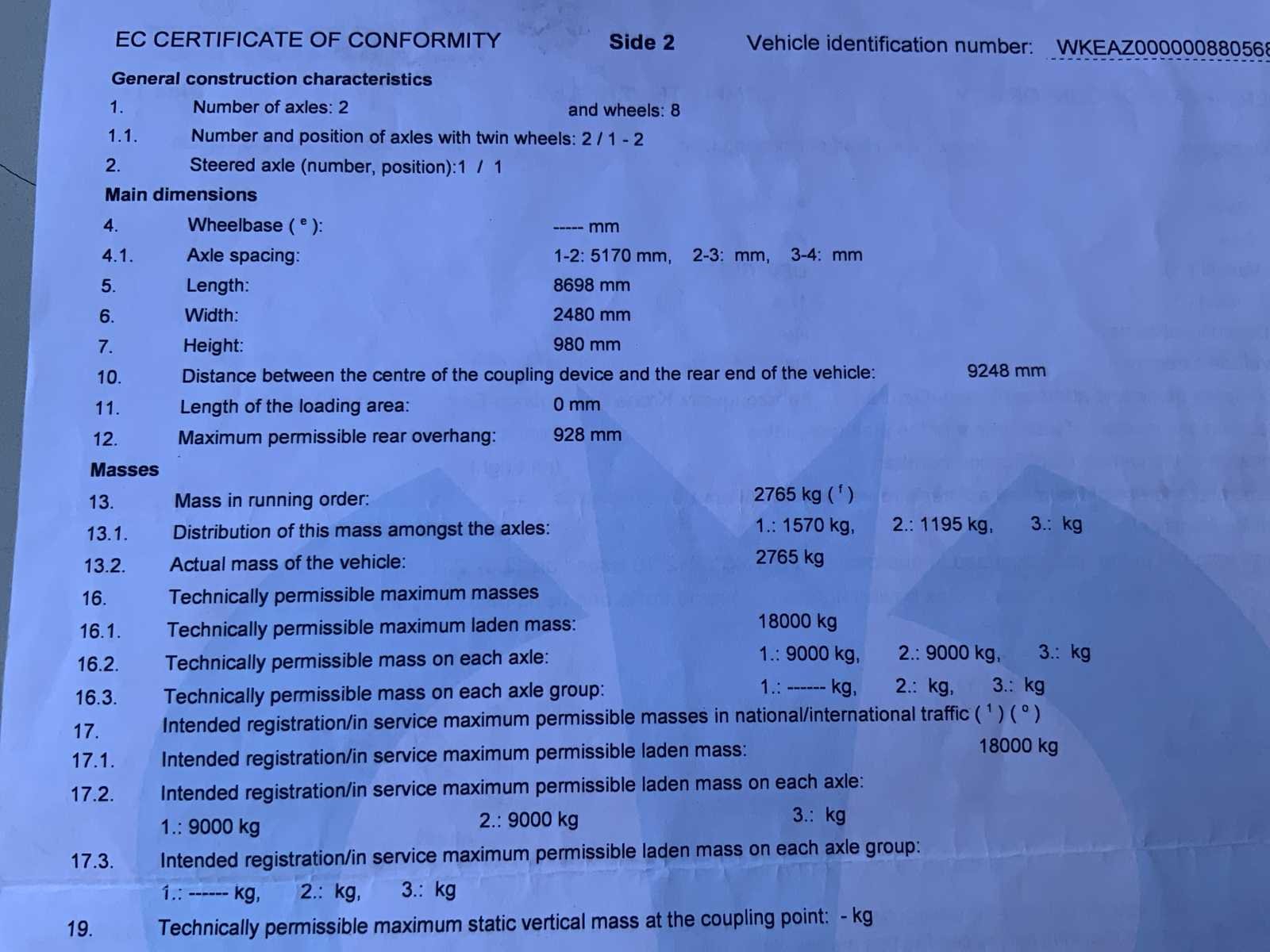 Non Merk: Krone Type: AZ Chassisnummer: WKEAZ000000880568 Aantal assen: 2 Ledig gewicht: 2700kg Laadvermogen: 18000kg Lengte: 930cm Breedte: 248cm Nationaliteit documenten: ja