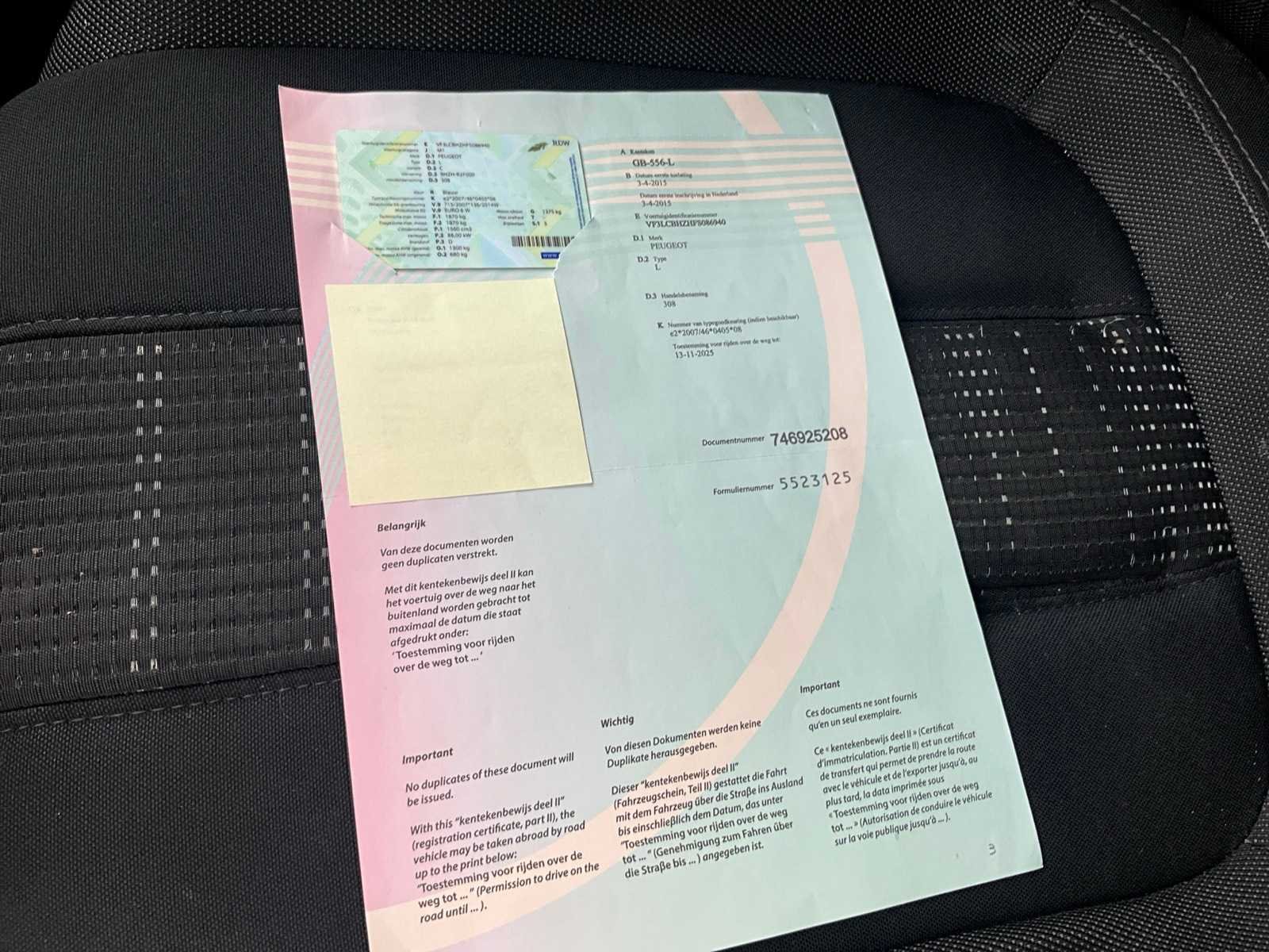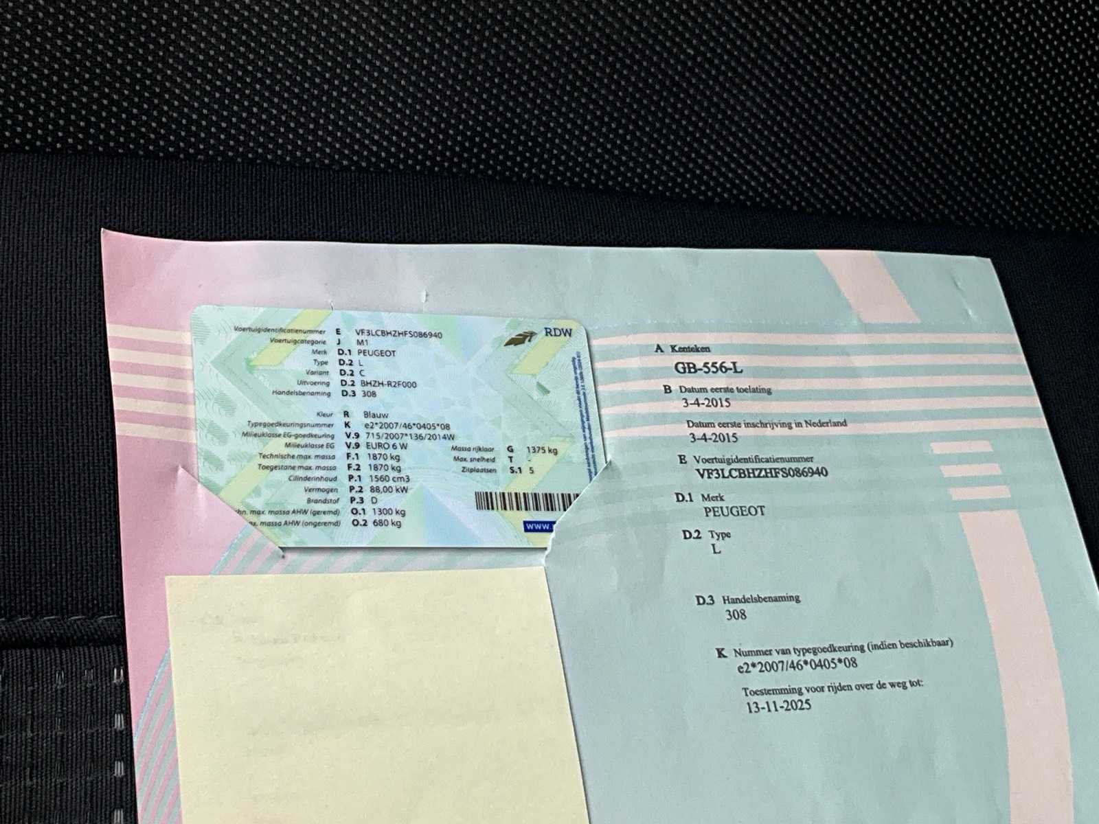 Non Merk: Peugeot Model: 308 Bouwjaar: 2015 Afgelezen kilometerstand: 290698km Cilinderinhoud: 1560cc Vermogen (kW): 88kW Brandstof: diesel Chassisnummer: VF3LCBHZHFS086940 Datum eerste toelating (NL): 03/04/2015 Aantal zitplaatsen: 5 Transmissie: Handgeschakeld Emissieklasse: Euro 6 Aantal deuren: 5 Aantal sleutels: 1 Nationaliteit documenten: Nederland Vavato voert geen technische keuring uit.: true Inschrijvingsbewijs - deel 1 : Aanwezig Inschrijvingsbewijs - deel 2: Aanwezig