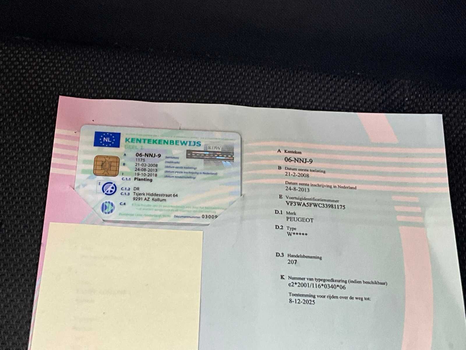 Non Merk: Peugeot Model: 207 Bouwjaar: 2008 Afgelezen kilometerstand: 158000km Cilinderinhoud: 1598cc Vermogen (kW): 88kW Brandstof: benzine Chassisnummer: VF3WA5FWC33981175 Datum eerste toelating (NL): 21/02/2008 Aantal zitplaatsen: 5 Transmissie: Handgeschakeld Emissieklasse: Euro4 Aantal deuren: 3 Aantal sleutels: 2 Nationaliteit documenten: Nederland Vavato voert geen technische keuring uit.: true Inschrijvingsbewijs - deel 1 : Aanwezig Inschrijvingsbewijs - deel 2: Aanwezig