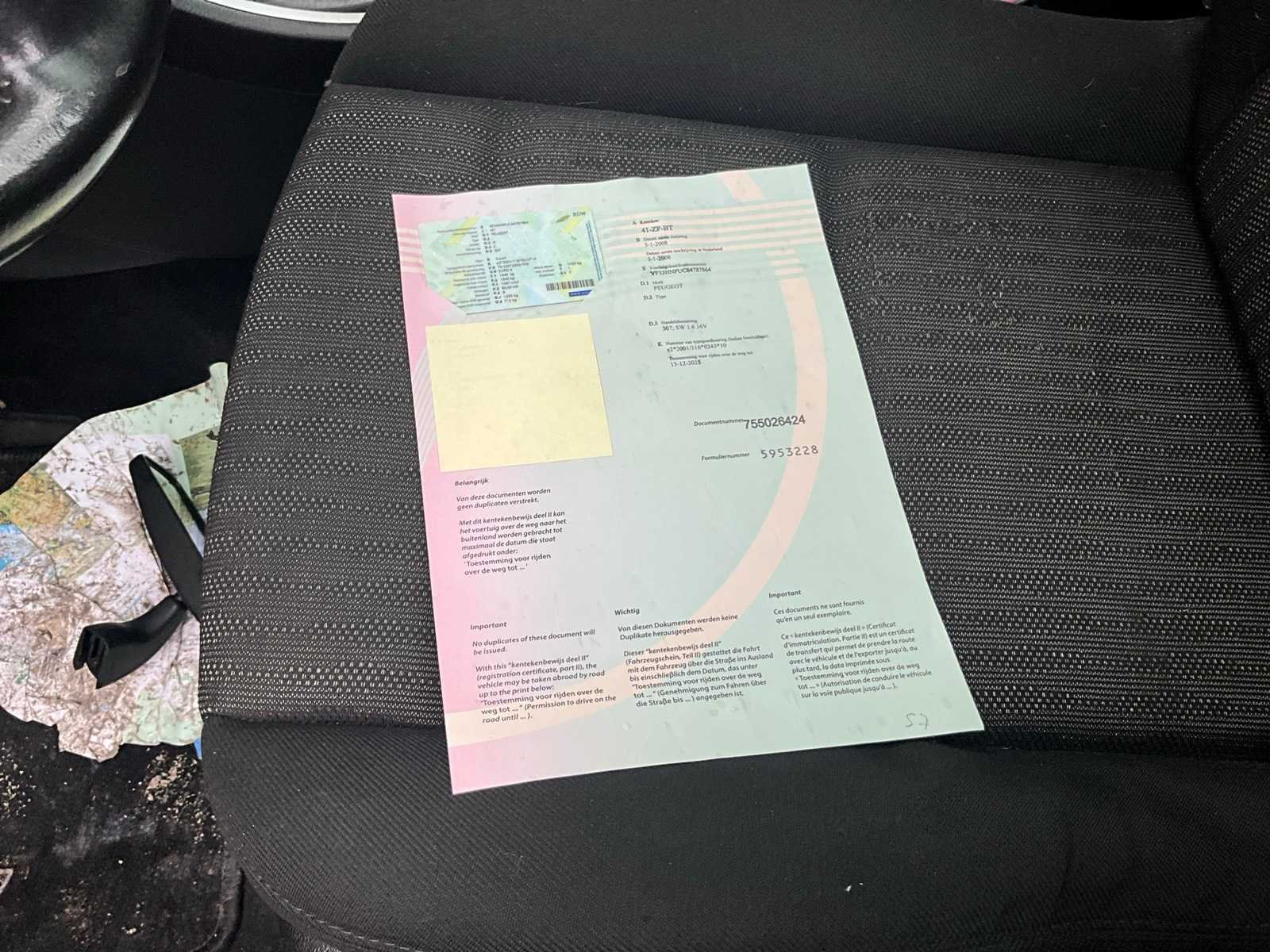Non Merk: Peugeot Model: 307 Bouwjaar: 2008 Afgelezen kilometerstand: 242960km Cilinderinhoud: 1587cc Vermogen (kW): 80kW Brandstof: benzine Chassisnummer: VF33HNFUC84787864 Datum eerste toelating (NL): 05/01/2008 Aantal zitplaatsen: 5 Transmissie: Handgeschakeld Emissieklasse: Euro4 Aantal deuren: 5 Aantal sleutels: 1 Nationaliteit documenten: Nederland Start en rijdt: Ja startinformatie : Start en rijdt Vavato voert geen technische keuring uit.: true Inschrijvingsbewijs - deel 1 : Aanwezig Inschrijvingsbewijs - deel 2: Aanwezig