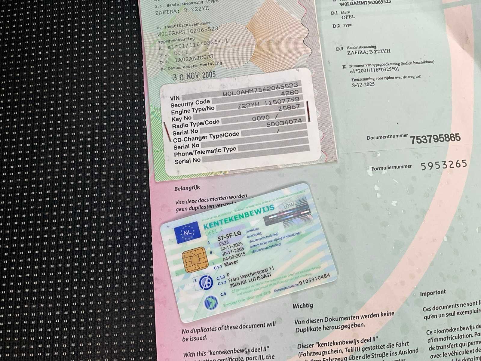 Non Merk: Opel Model: Zafira Bouwjaar: 2005 Afgelezen kilometerstand: 287261km Cilinderinhoud: 2198cc Vermogen (kW): 110kW Brandstof: benzine Chassisnummer: WOLOAHM7562065523 Datum eerste toelating (NL): 30/11/2005 Aantal zitplaatsen: 7 Transmissie: Handgeschakeld Aantal deuren: 5 Aantal sleutels: 1 Nationaliteit documenten: Nederland Start en rijdt: Ja startinformatie : Start en rijdt Vavato voert geen technische keuring uit.: true Inschrijvingsbewijs - deel 1 : Aanwezig Inschrijvingsbewijs - deel 2: Aanwezig