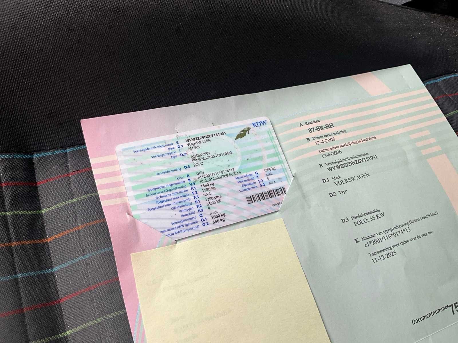 Non Merk: Volkswagen Model: Polo Bouwjaar: 2006 Afgelezen kilometerstand: 312165km Cilinderinhoud: 1390cc Vermogen (kW): 55kW Brandstof: benzine Chassisnummer: WVWZZZ9NZ6Y151931 Datum eerste toelating (NL): 12/04/2006 Aantal zitplaatsen: 5 Transmissie: Handgeschakeld Emissieklasse: Euro4 Aantal deuren: 5 Aantal sleutels: 1 Nationaliteit documenten: Nederland Start en rijdt: Ja startinformatie : Start en rijdt Vavato voert geen technische keuring uit.: true Inschrijvingsbewijs - deel 1 : Aanwezig Inschrijvingsbewijs - deel 2: Aanwezig