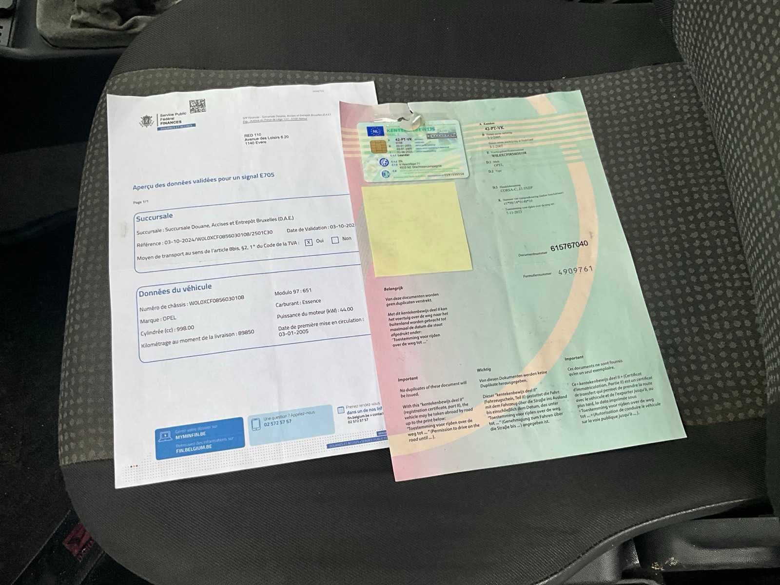 Non Merk: Opel Model: Corsa Bouwjaar: 2005 Afgelezen kilometerstand: 90297km Cilinderinhoud: 998cc Vermogen (kW): 44kW Brandstof: benzine Chassisnummer: WOLOXCF0856030108 Datum eerste toelating (NL): 03/01/2005 Aantal zitplaatsen: 5 Transmissie: Handgeschakeld Emissieklasse: Euro4 Aantal deuren: 3 Aantal sleutels: 1 Nationaliteit documenten: Nederland Start en rijdt: Ja startinformatie : Start en rijdt Vavato voert geen technische keuring uit.: true Inschrijvingsbewijs - deel 1 : Aanwezig Inschrijvingsbewijs - deel 2: Aanwezig