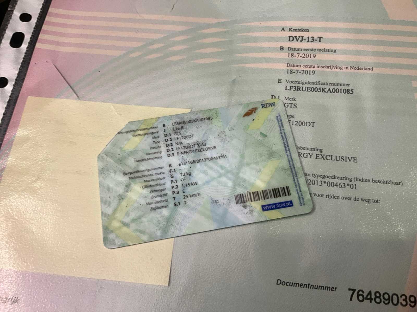 Non Merk: Gts Model: E-nergy exclusive Chassisnummer: LF3RUE005KA001085 Datum eerste toelating: 18/07/2019 Bouwjaar: 2019 Brandstof: Elektrisch Afgelezen kilometerstand: 5532km