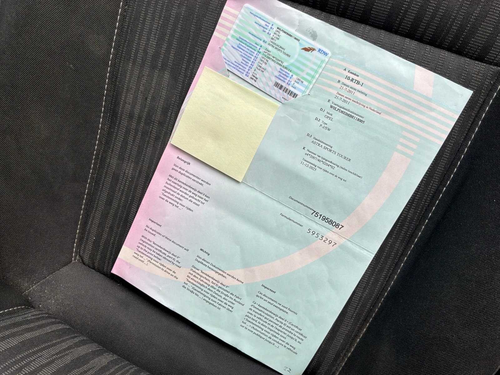 Zonder kinderstoel Non Merk: Opel Model: Astra Sport Tourer Bouwjaar: 2011 Afgelezen kilometerstand: 126794km Cilinderinhoud: 1398cc Vermogen (kW): 74kW Brandstof: benzine Chassisnummer: WOLPD8EB8B8118005 Datum eerste toelating (NL): 21/07/2011 Aantal zitplaatsen: 5 Transmissie: Handgeschakeld Emissieklasse: Euro 5 Aantal deuren: 5 Aantal sleutels: 2 Nationaliteit documenten: Nederland Start en rijdt: Ja startinformatie : Start en rijdt Vavato voert geen technische keuring uit.: true Inschrijvingsbewijs - deel 1 : Aanwezig Inschrijvingsbewijs - deel 2: Aanwezig