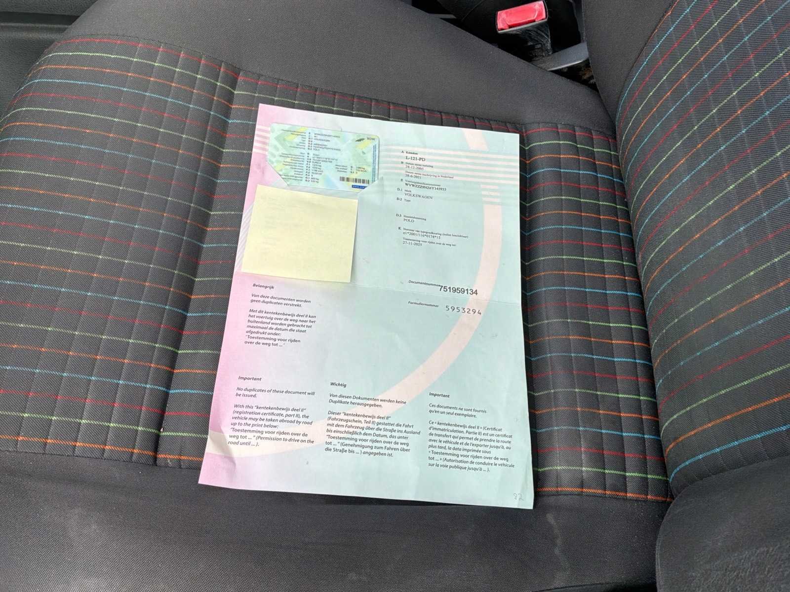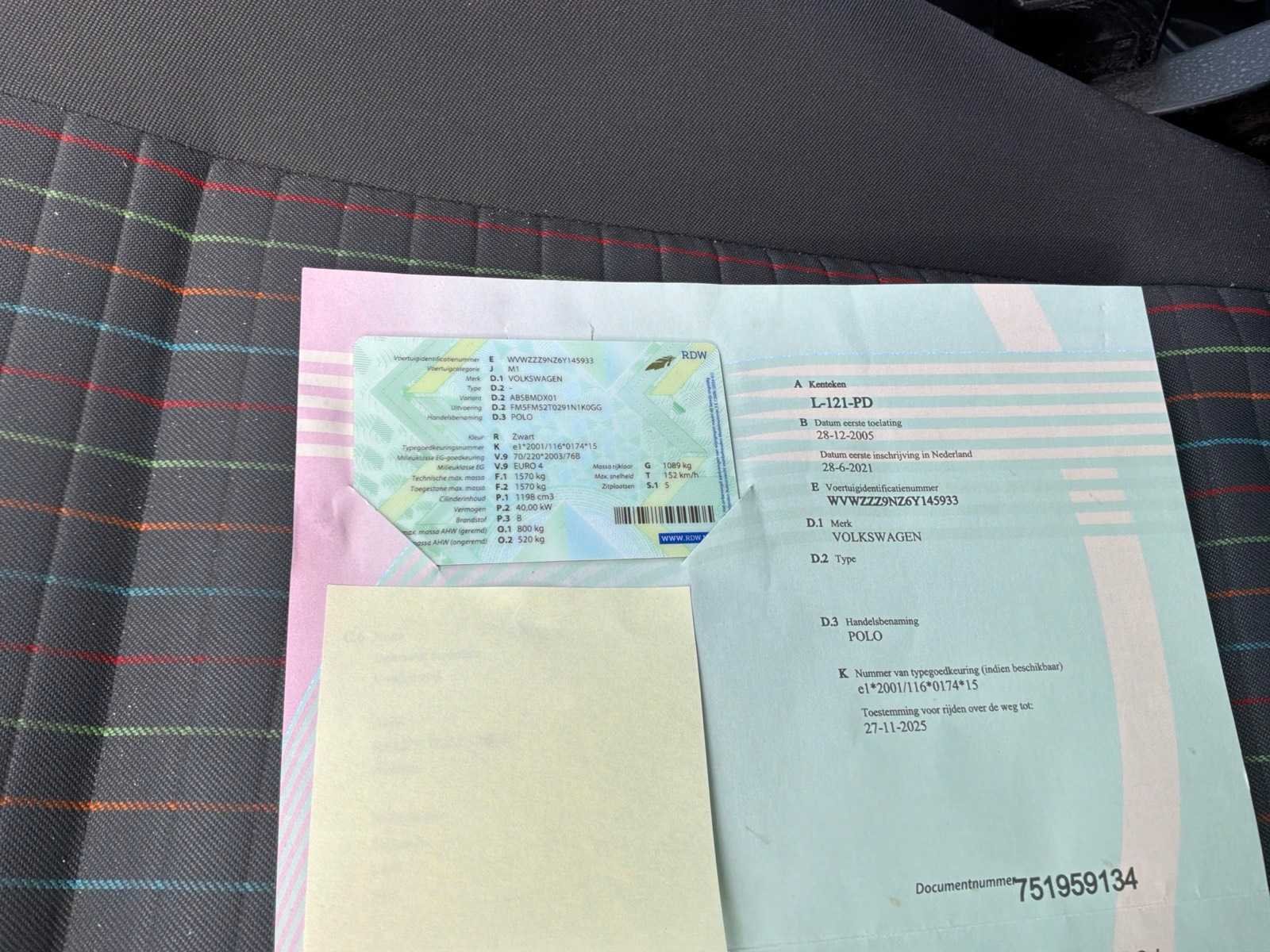 Non Merk: Volkswagen Model: Polo Bouwjaar: 2005 Afgelezen kilometerstand: 246525km Cilinderinhoud: 1198cc Vermogen (kW): 40kW Brandstof: benzine Chassisnummer: WVWZZZ9NZ6Y145933 Datum eerste toelating (NL): 28/12/2005 Aantal zitplaatsen: 5 Transmissie: Handgeschakeld Emissieklasse: Euro4 Aantal deuren: 3 Aantal sleutels: 1 Nationaliteit documenten: Nederland Start en rijdt: Ja startinformatie : Start en rijdt Vavato voert geen technische keuring uit.: true Inschrijvingsbewijs - deel 1 : Aanwezig Inschrijvingsbewijs - deel 2: Aanwezig