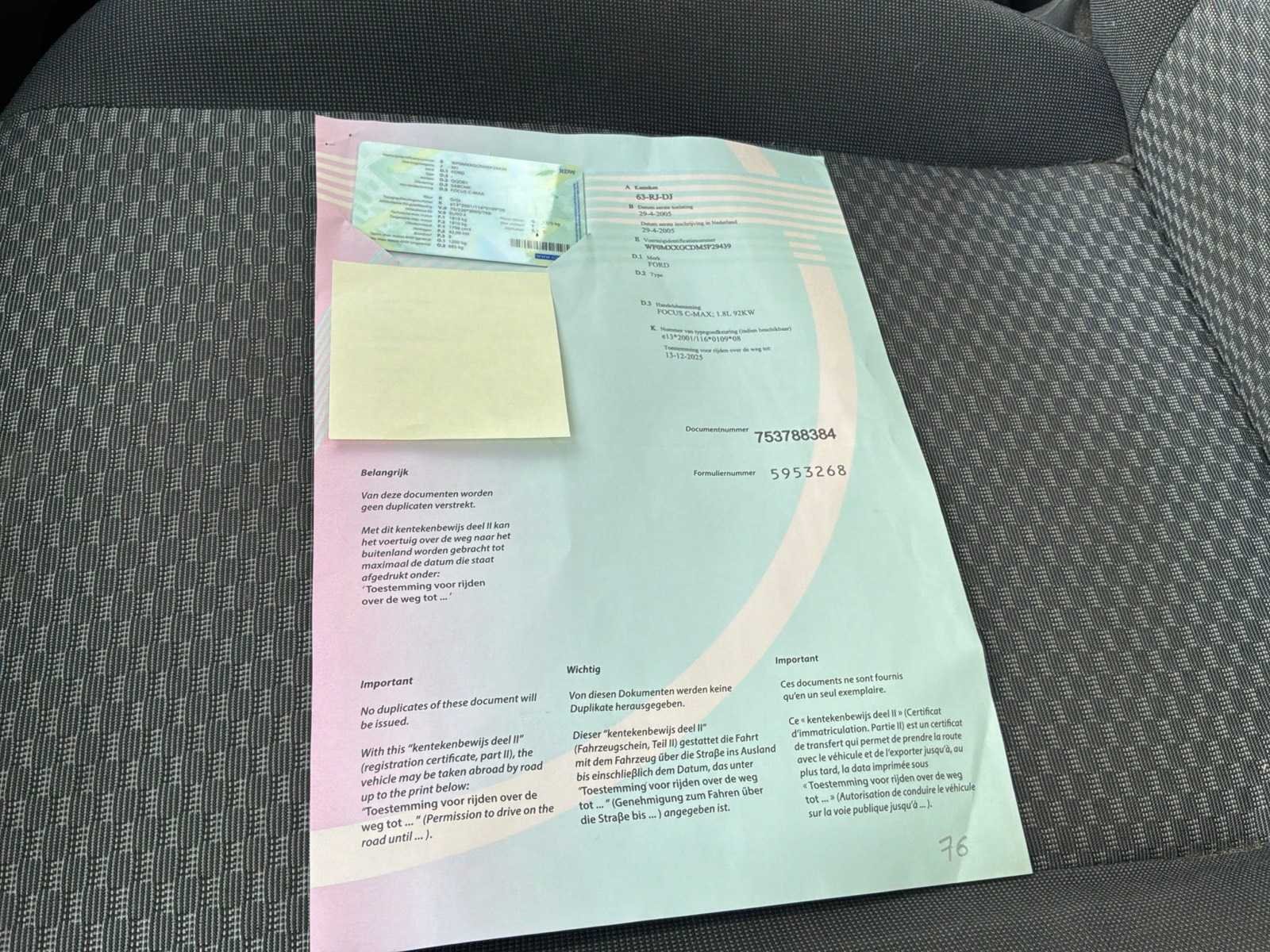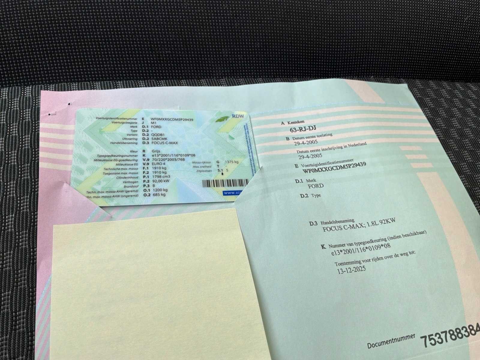 Non Merk: Ford Model: Focus c Max Bouwjaar: 2005 Afgelezen kilometerstand: 227021km Cilinderinhoud: 1798cc Vermogen (kW): 92kW Brandstof: benzine Chassisnummer: WFOMXXGCDM5P29439 Datum eerste toelating (NL): 29/04/2005 Aantal zitplaatsen: 5 Transmissie: Handgeschakeld Emissieklasse: Euro4 Aantal deuren: 5 Aantal sleutels: 4 Nationaliteit documenten: Nederland Start en rijdt: Ja startinformatie : Start en rijdt Vavato voert geen technische keuring uit.: true Inschrijvingsbewijs - deel 1 : Aanwezig Inschrijvingsbewijs - deel 2: Aanwezig