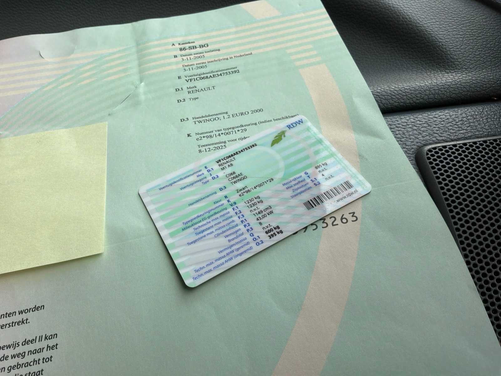 Non Merk: Renault Model: Twingo Bouwjaar: 2005 Afgelezen kilometerstand: 309000km Cilinderinhoud: 1149cc Vermogen (kW): 43kW Brandstof: benzine Chassisnummer: VF1C068AE34753392 Datum eerste toelating (NL): 03/11/2005 Aantal zitplaatsen: 4 Transmissie: Handgeschakeld Aantal deuren: 3 Aantal sleutels: 1 Nationaliteit documenten: Nederland Start en rijdt: Ja startinformatie : Start en rijdt Vavato voert geen technische keuring uit.: true Inschrijvingsbewijs - deel 1 : Aanwezig Inschrijvingsbewijs - deel 2: Aanwezig