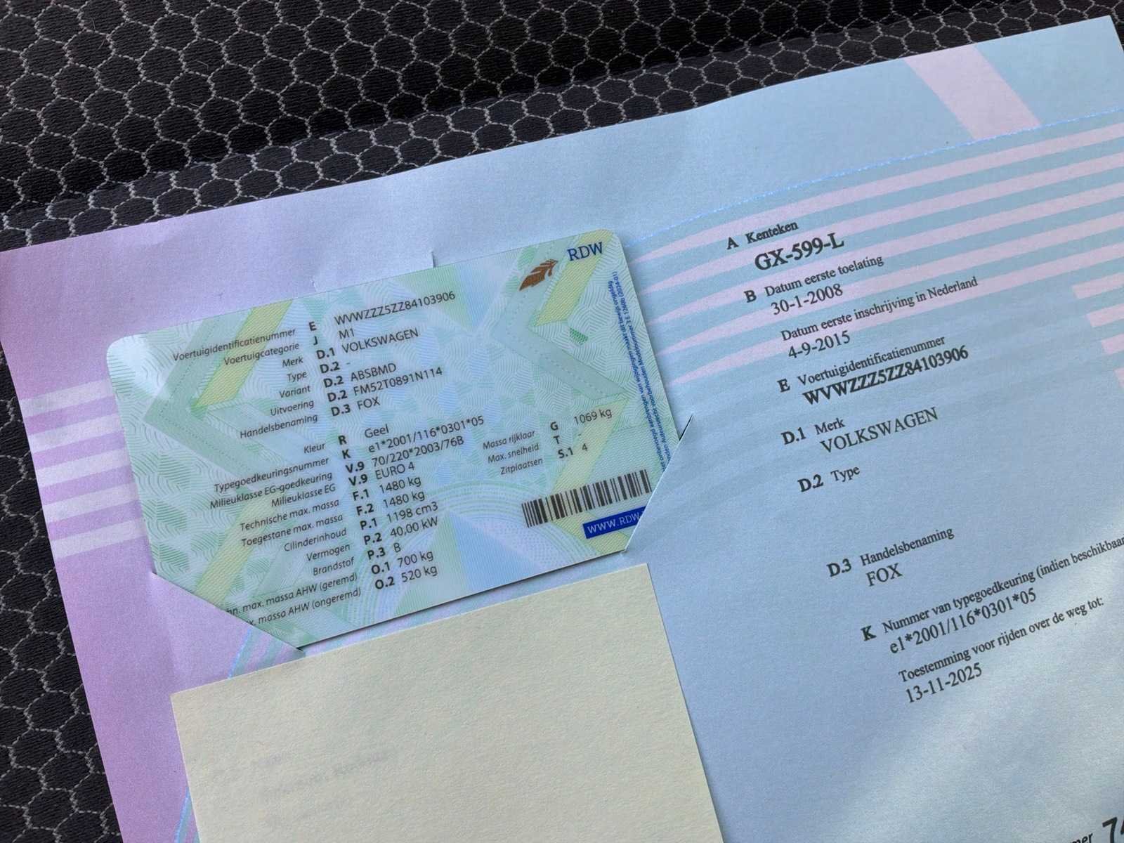 Non Merk: Volkswagen Model: Fox Bouwjaar: 2008 Afgelezen kilometerstand: 202517km Cilinderinhoud: 1198cc Vermogen (kW): 40kW Brandstof: benzine Chassisnummer: WVWZZZ5ZZ84103906 Datum eerste toelating (NL): 30/01/2008 Aantal zitplaatsen: 4 Transmissie: Handgeschakeld Emissieklasse: Euro4 Aantal deuren: 3 Vavato voert geen technische keuring uit.: true Inschrijvingsbewijs - deel 1 : Aanwezig Inschrijvingsbewijs - deel 2: Aanwezig