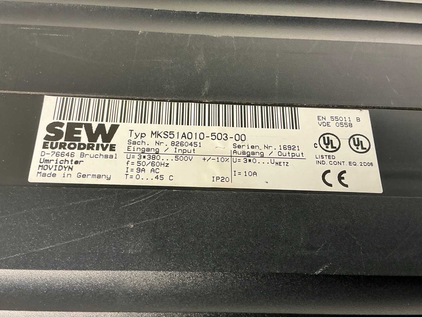 <Br> - Input: 9A. - Output: 10A. Merk: SEW Eurodrive Model: Movidyn Product type: MKS51A005-503-50 Digitaal: true