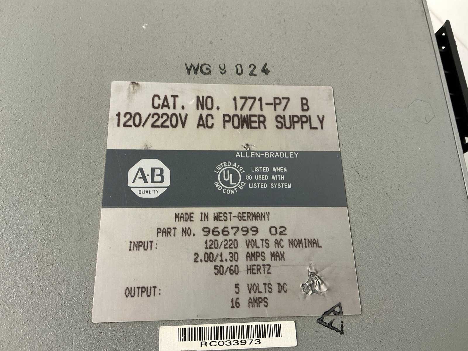 Merk: Allen-Bradley Type: 1771-P7 B