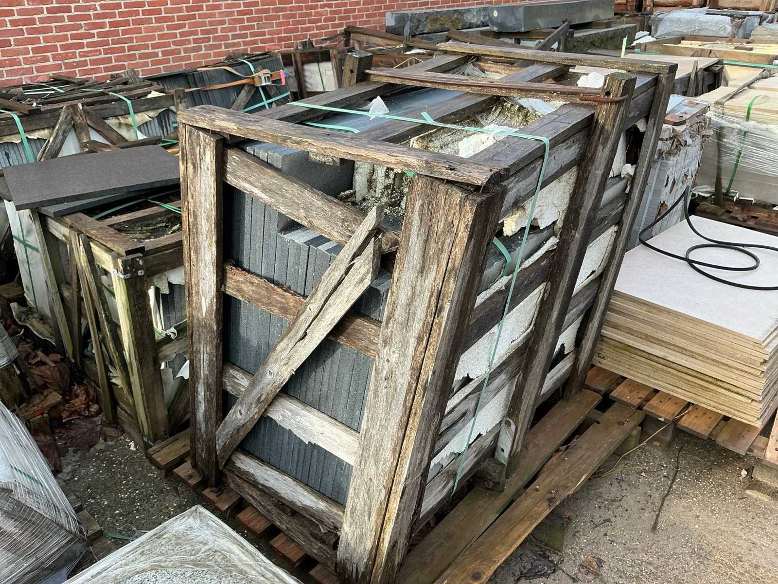 G654 anticato met gezoete zijkanten. Liggende op 1x pallet. Waaronder met afmetingen: 100 x 100cm, 73 x 100cm en 70 x 100cm Afmeting h: 20mm