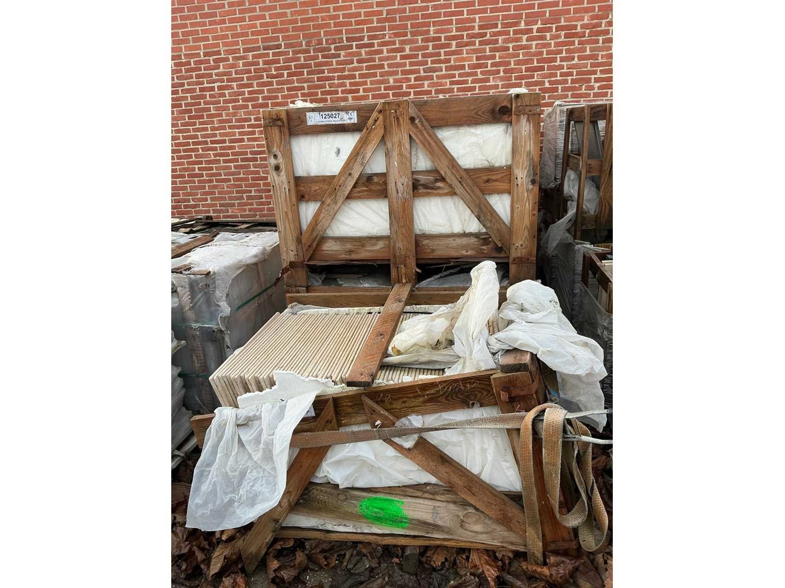 Getrommeld. Liggende in 7 kisten. Afmeting l: 600mm Afmeting b: 600mm Afmeting h: 12mm
