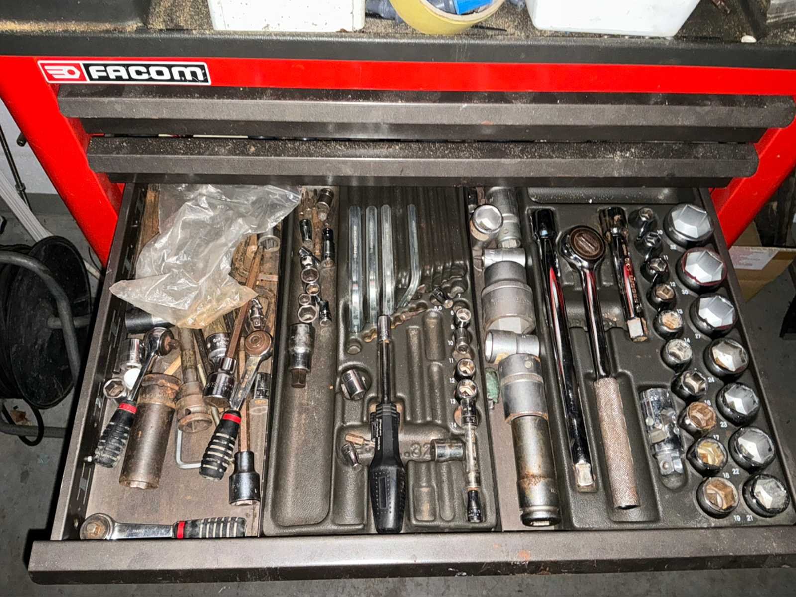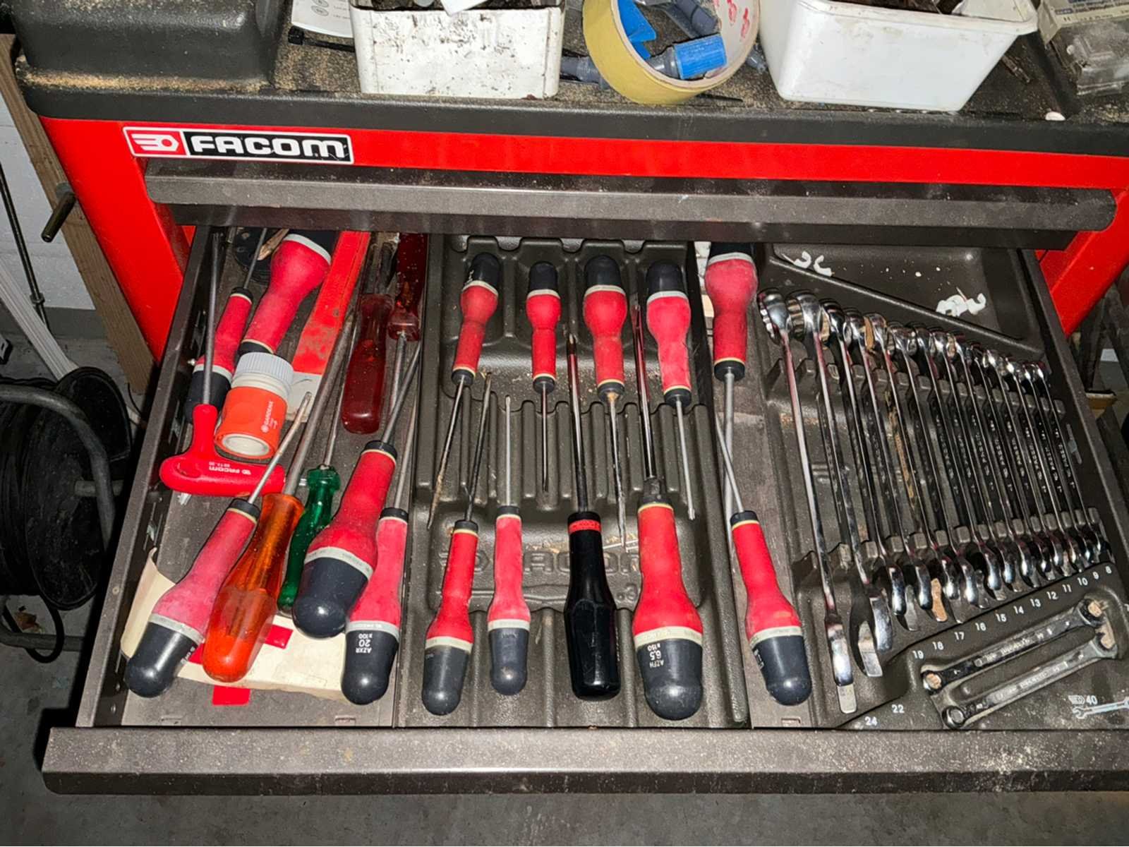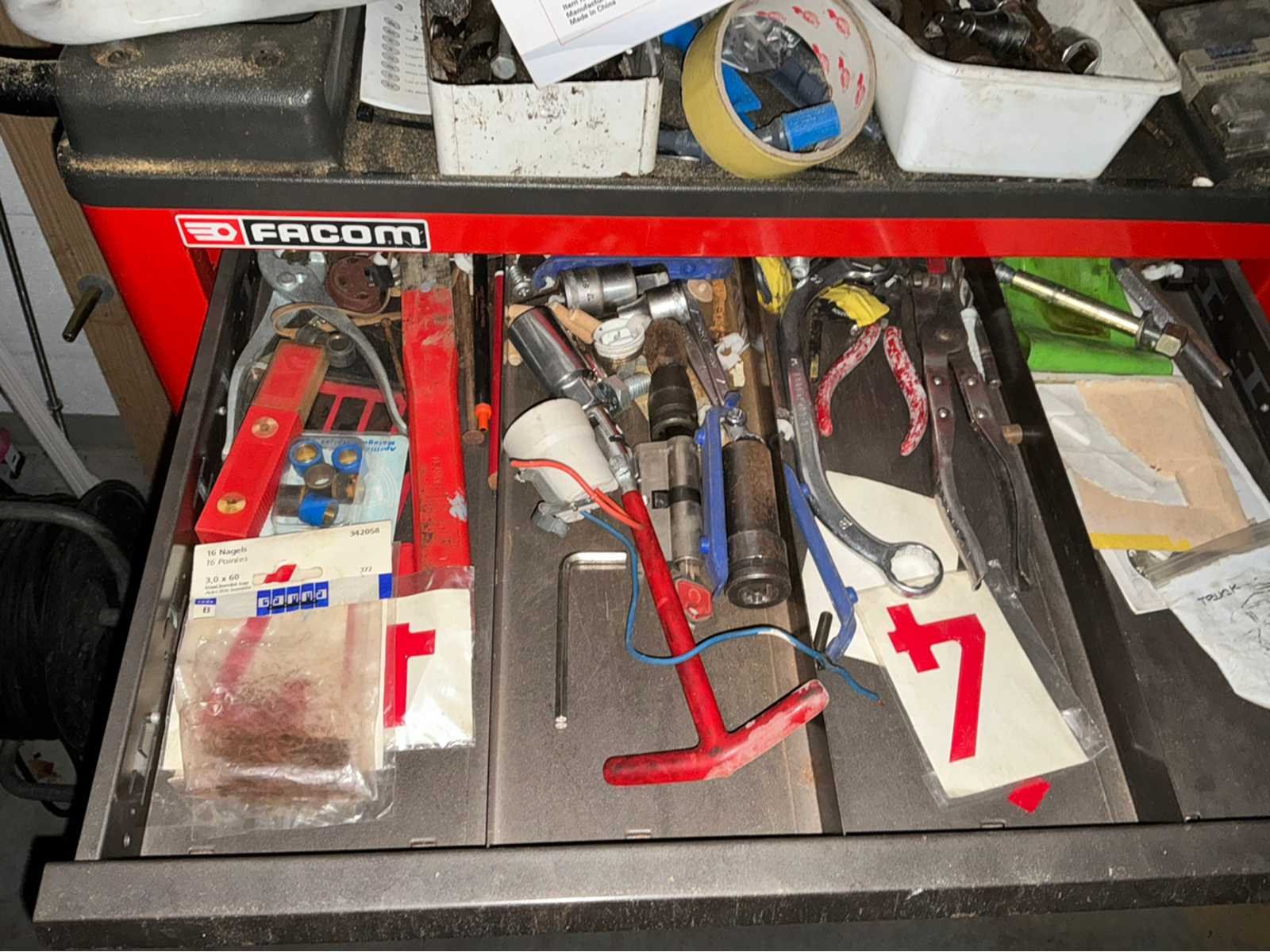 Voorzien van 5 laden inhoudende diverse gereedschappen Merk: Facom