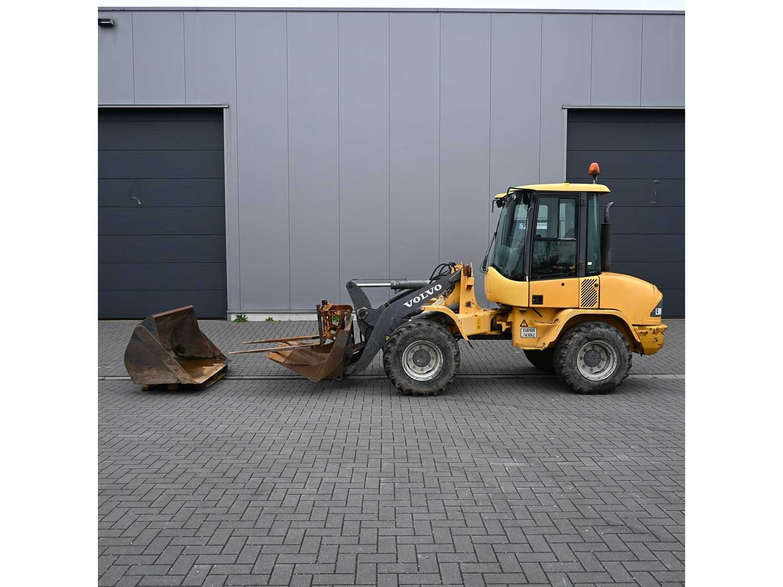Volvo shovel 1 closed bucket 1 rubble bucket 1 pallet fork Merk: Volvo Type: L30B Bouwjaar: 2002 Merk motor: Deutz Motorvermogen (kW): 43kW Aantal cilinders: 4 Brandstof: Diesel Graafbak afm. l: 1650mm Graafbak afm. b: 1650mm Cabine: true Afgelezen urenstand: 7219 Eigen gewicht: 6650kg Leveringsvoorwaarden: Gratis op vrachtwagen