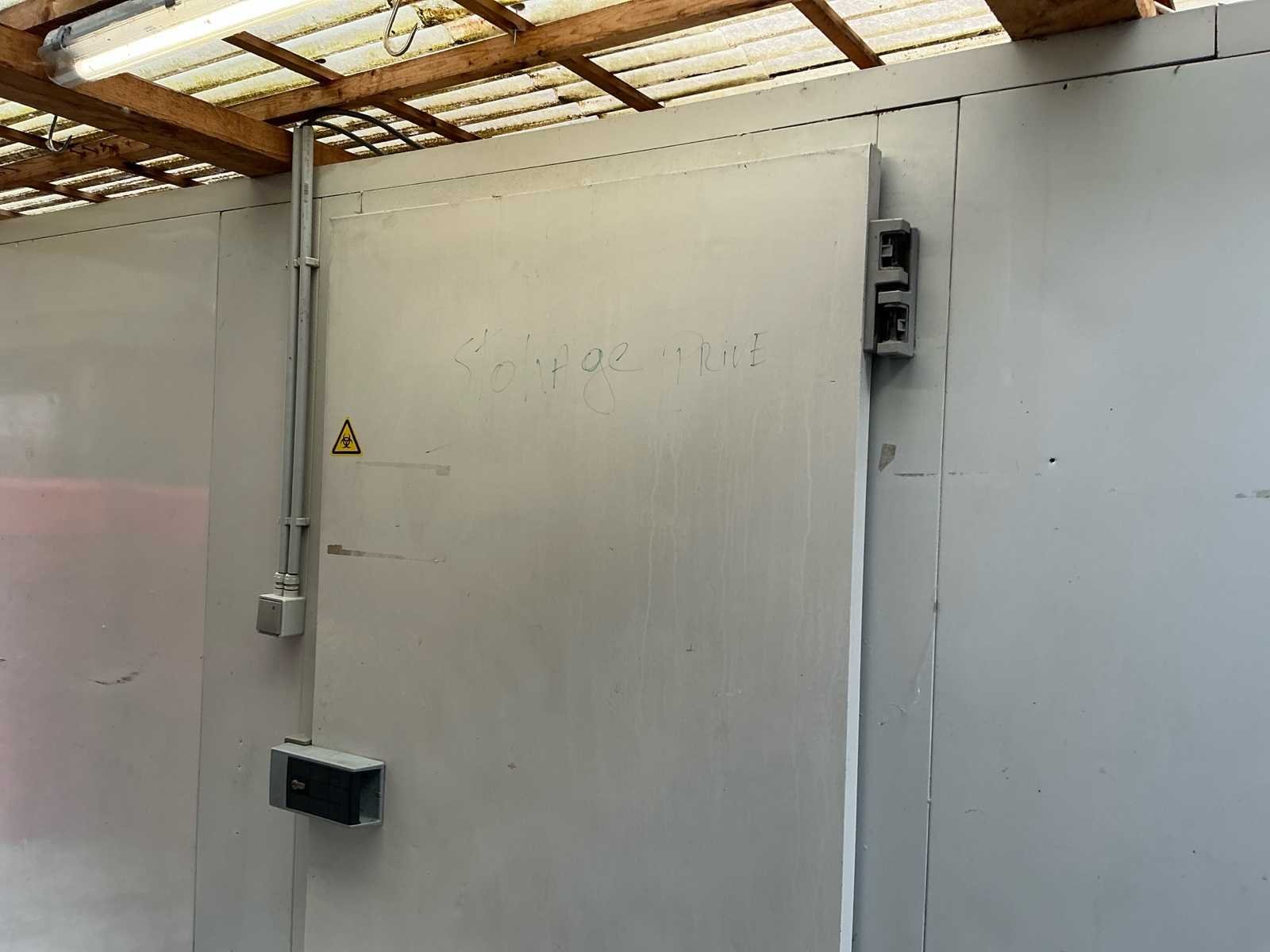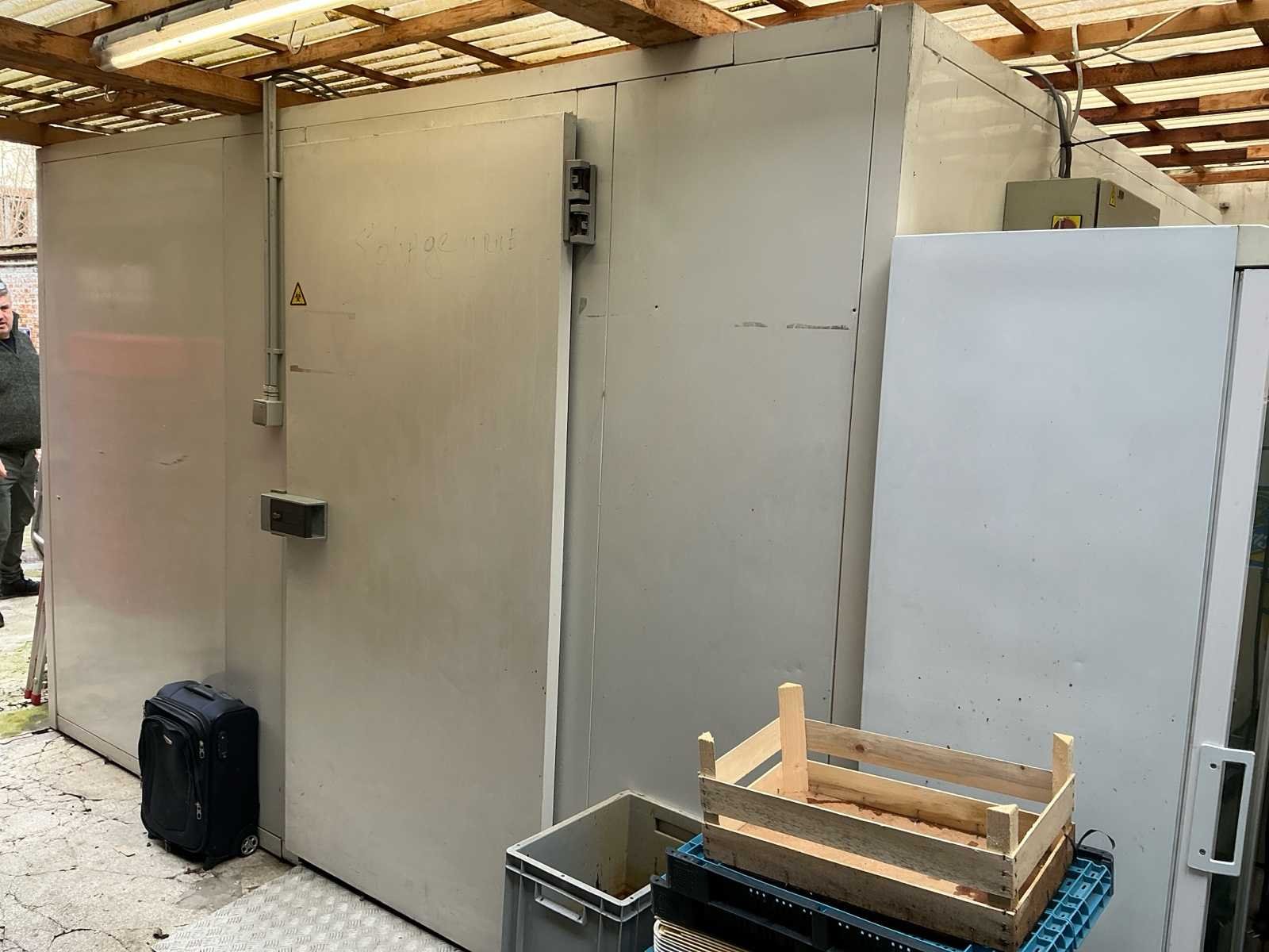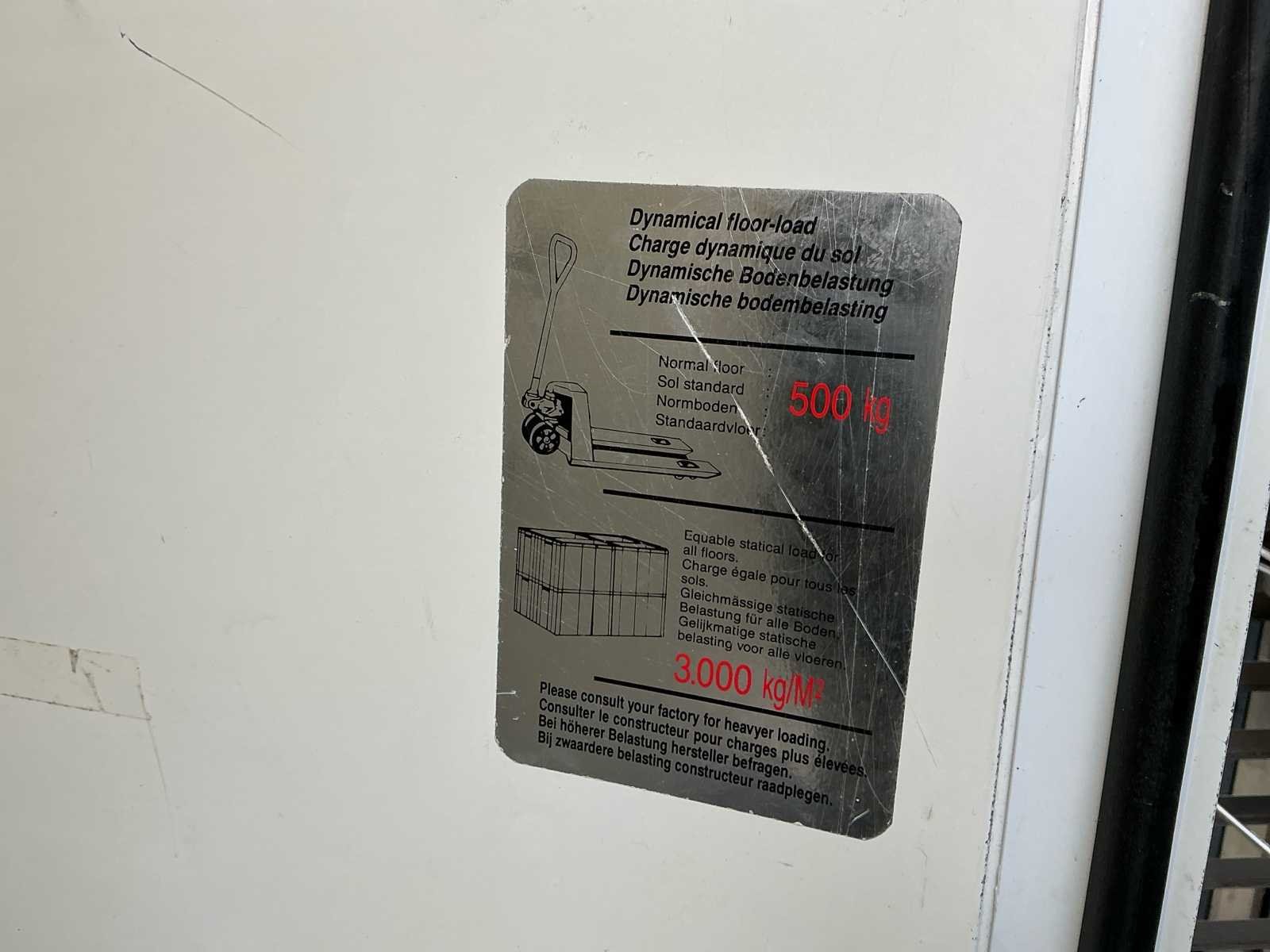 330x300. Zonder inhoud. Zelf te demonteren. Professionele modulaire inloop koelcelinstallatie, geschikt voor intensief gebruik binnen horeca, catering, slagerij of grootkeuken. Deze koelcel is opgebouwd uit geïsoleerde sandwichpanelen en uitgerust met een krachtige externe koelgroep (R404A) voor betrouwbare en constante koeling. De installatie beschikt over een industriële verdamper (MCL 48) en koelgroep (CAJ 4517 ZHR), aangestuurd via een overzichtelijke bedieningskast met digitale temperatuurregeling en controle-indicatoren (hoge druk, thermisch, temperatuuralarm). Dankzij de robuuste vloerconstructie is de cel geschikt voor zware belasting (tot 3.000 kg/m² statisch), ideaal voor opslag van grote hoeveelheden voedingswaren. Deze koelcel combineert capaciteit, duurzaamheid en professionele koeltechniek in één complete installatie. Een uitstekende oplossing voor bedrijven die nood hebben aan betrouwbare gekoelde opslagruimte. Een solide en functionele koeloplossing met industriële prestaties.