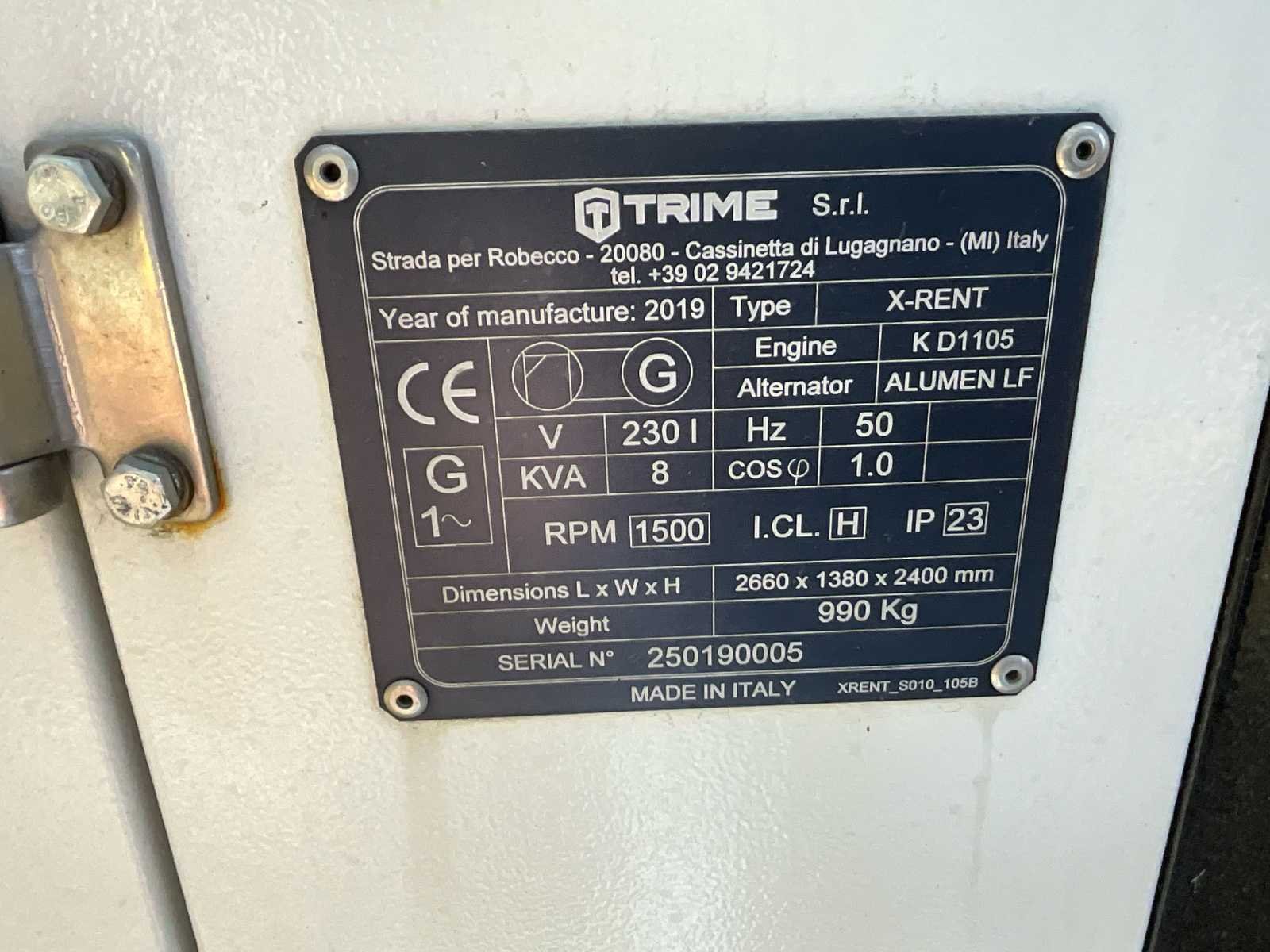 Merk: Trime Type: X-Rent Capaciteit.: 8kVA Diesel: true Type motor: Kubota Afgelezen urenstand: 295