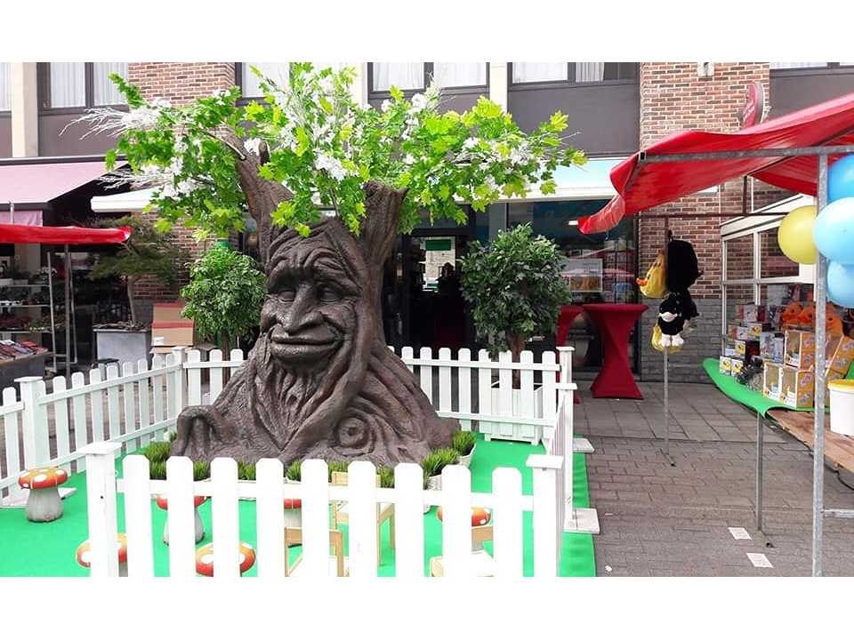 De verhaaltjesboom brengt verhalen tot leven! De boom vertelt en beweegt op alle spraak en muziek. De verhaaltjesboom is een meerwaarde voor elk evenement! <p> 3,5 meter hoog Ruim aanbod van verhalen De boom beweegt met zijn takken, ogen en mond mee op alle spraak en muziek Vervangbare takken per seizoen Interactie met bezoekers Bewegende delen: takken, ogen en mond (via geprogrammeerde bewegingen of met bijgeleverde afstandsbediening) Zingende boom: alles wat op MP3 wordt aangeleverd kan worden afgespeeld (zowel teksten als muziek) Unieke eye-catcher </p>