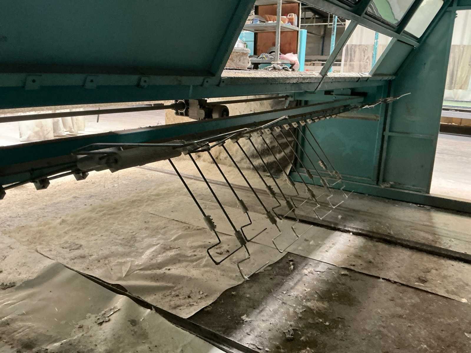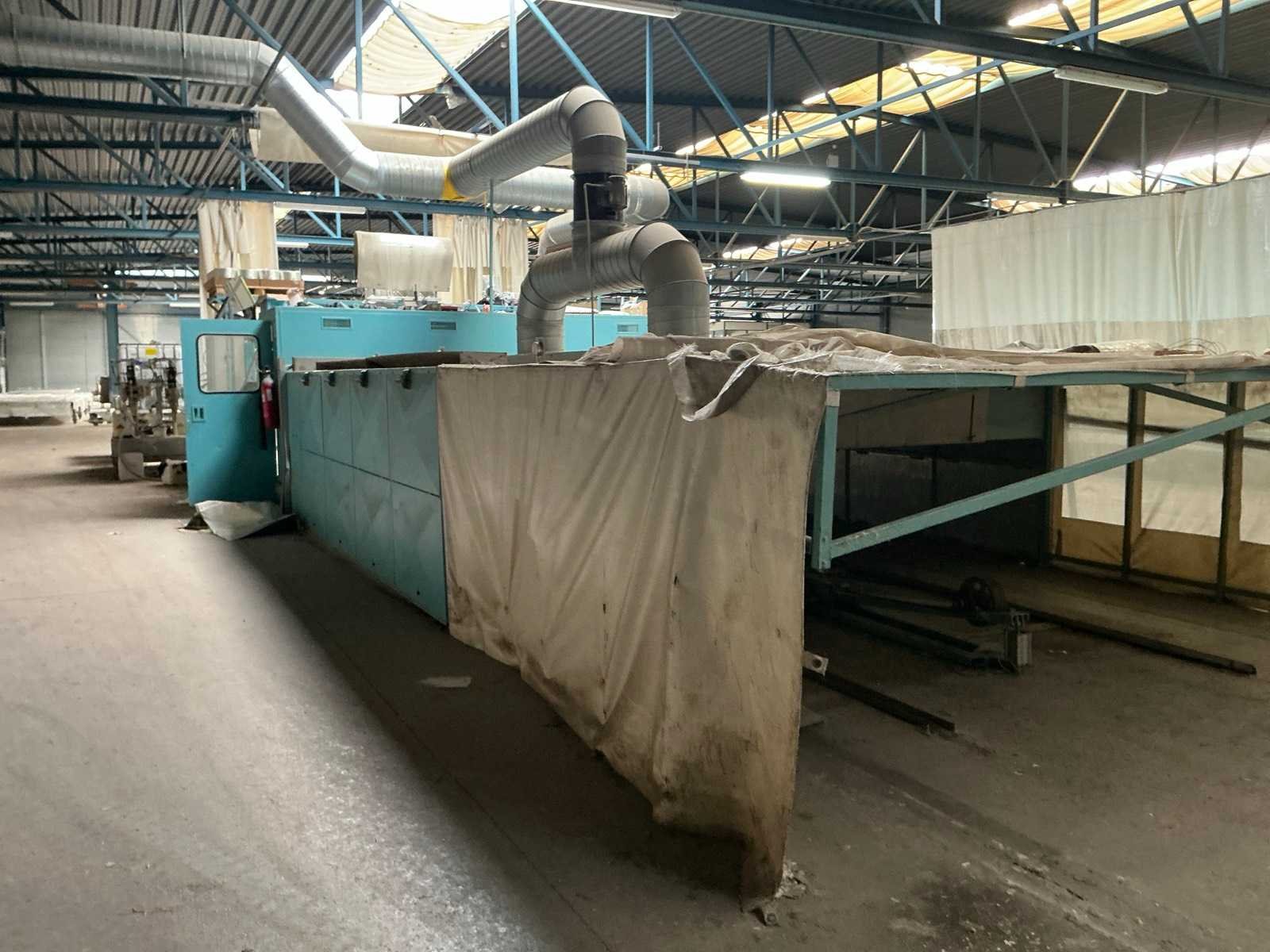 Dienend als reciprocator voor panelen te lamineren/lakken/ voorzien van dubbele afzuiging, turbine, kettingsysteem voor het voortrekken van de kar, dubbele legbak voorzien van sturing voor de triginox, polyproces GCI white hars, elektrische stuurkast voor coating. Merk: Venus Serienummer: 4846 Afmeting l: 14000mm Afmeting b: 6000mm